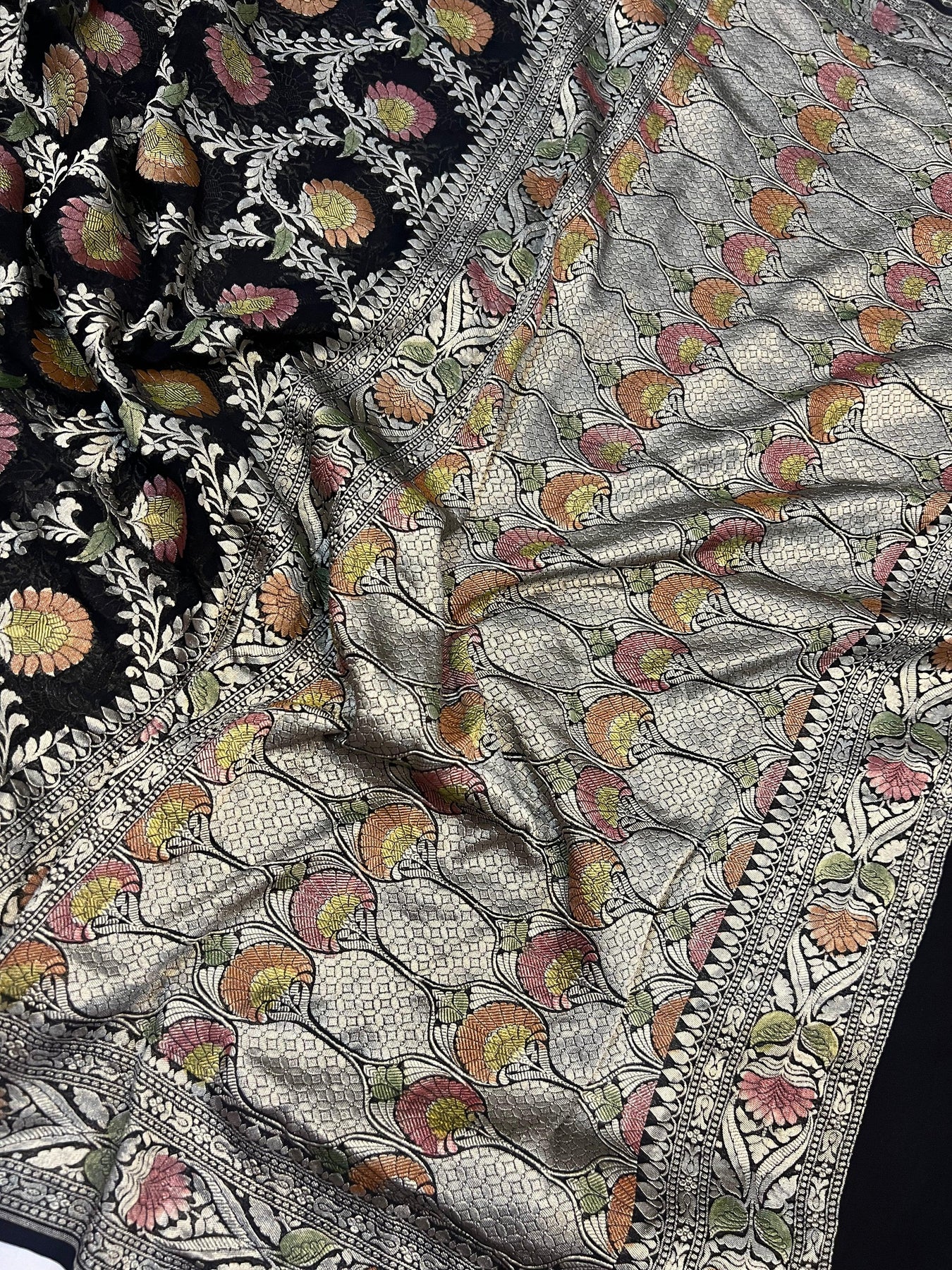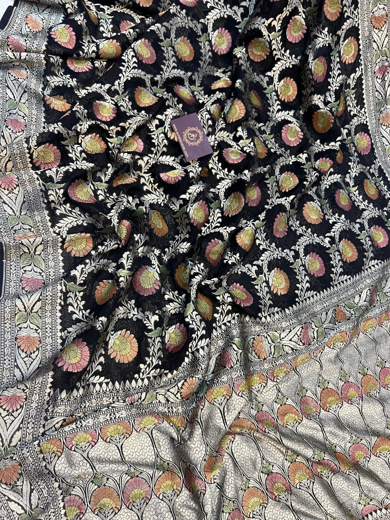Pre Order :: Black Rangkaat Banarasi Khaddi Georgette Saree