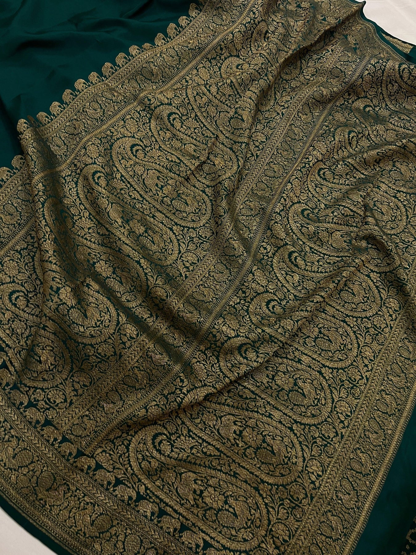 Bottle Green Pure Banarasi Khaddi Crepe Silk Saree