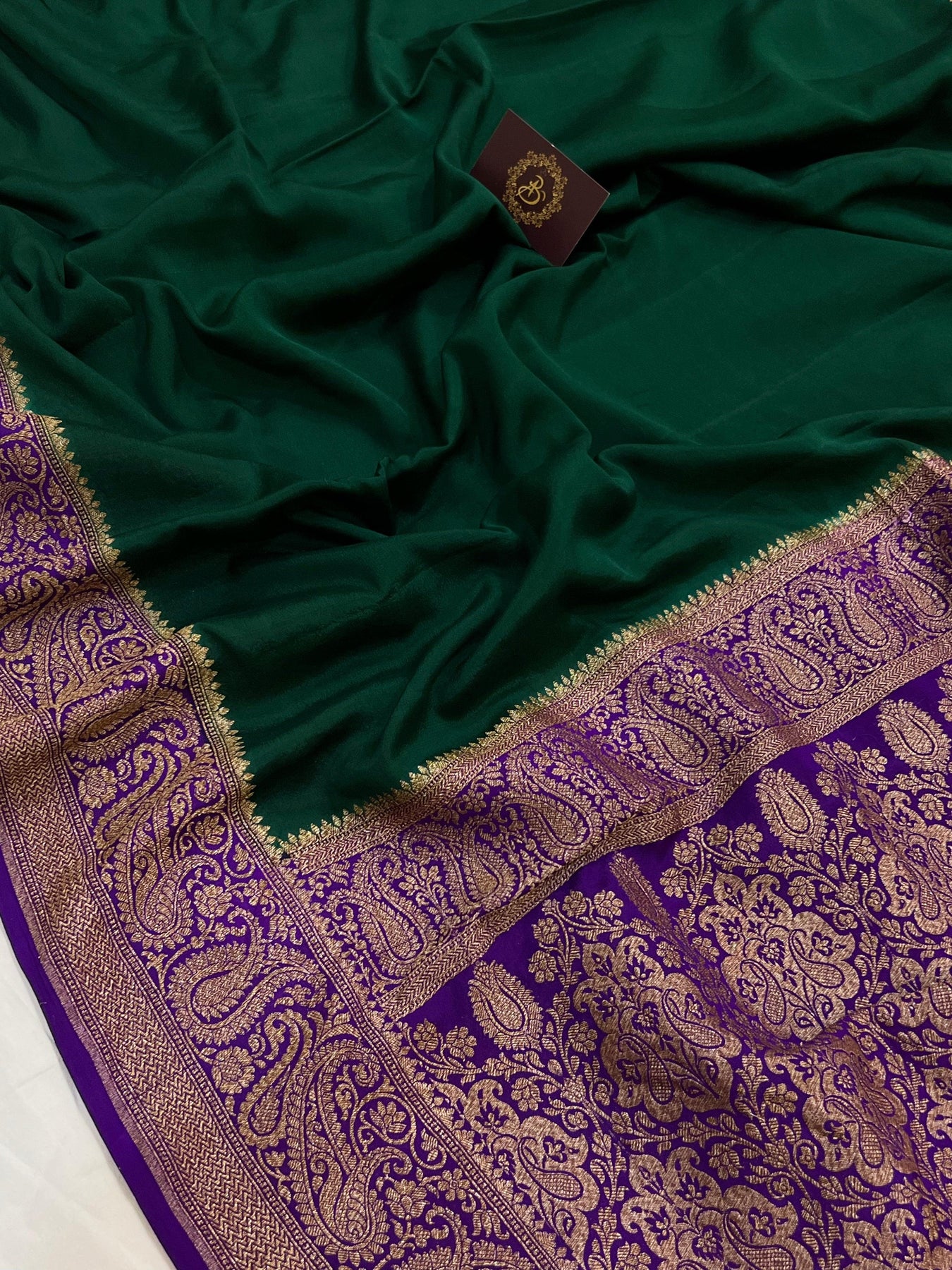 Bottle Green Pure Banarasi Khaddi Crepe Silk Saree