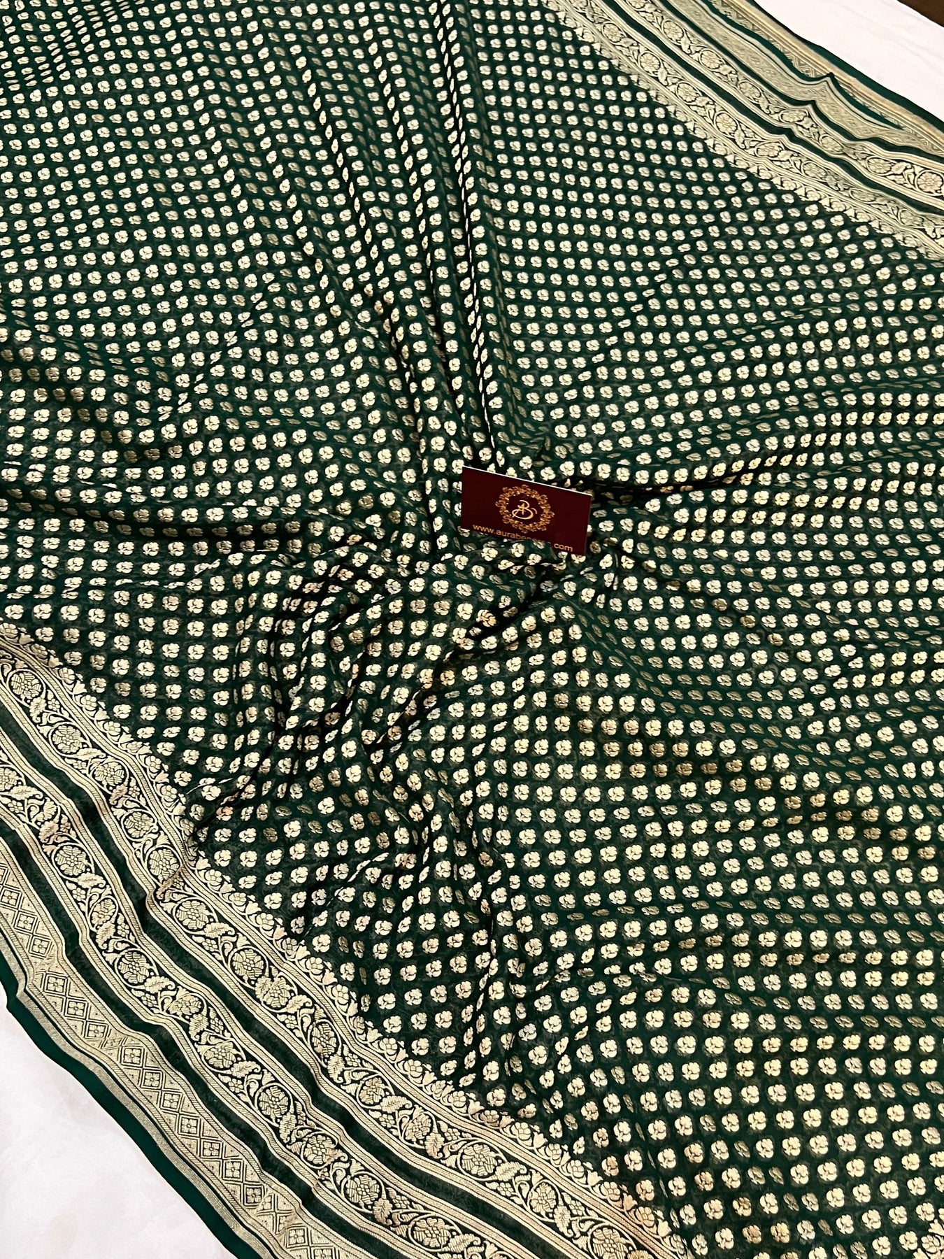 Bottle Green Pure Banarasi Khaddi Georgette Saree