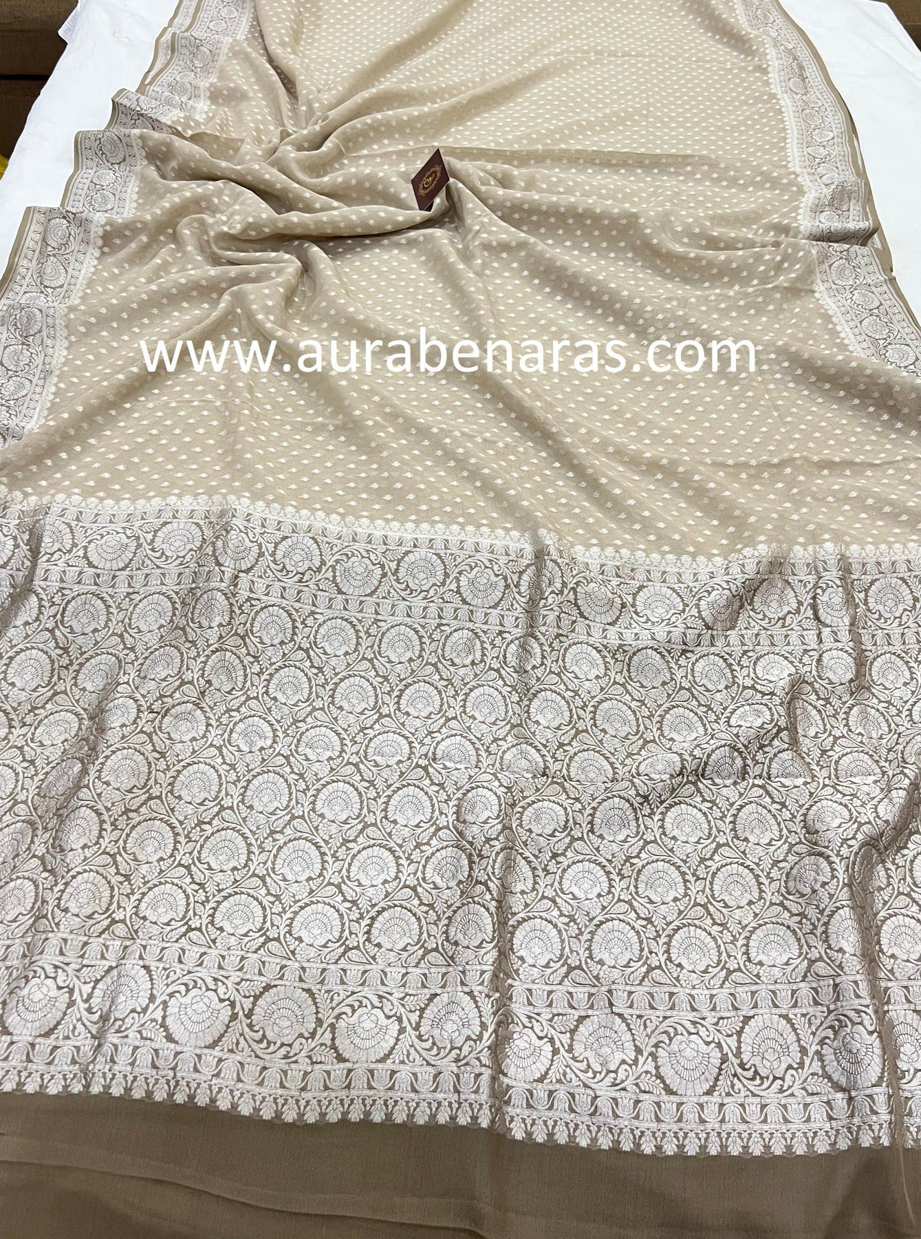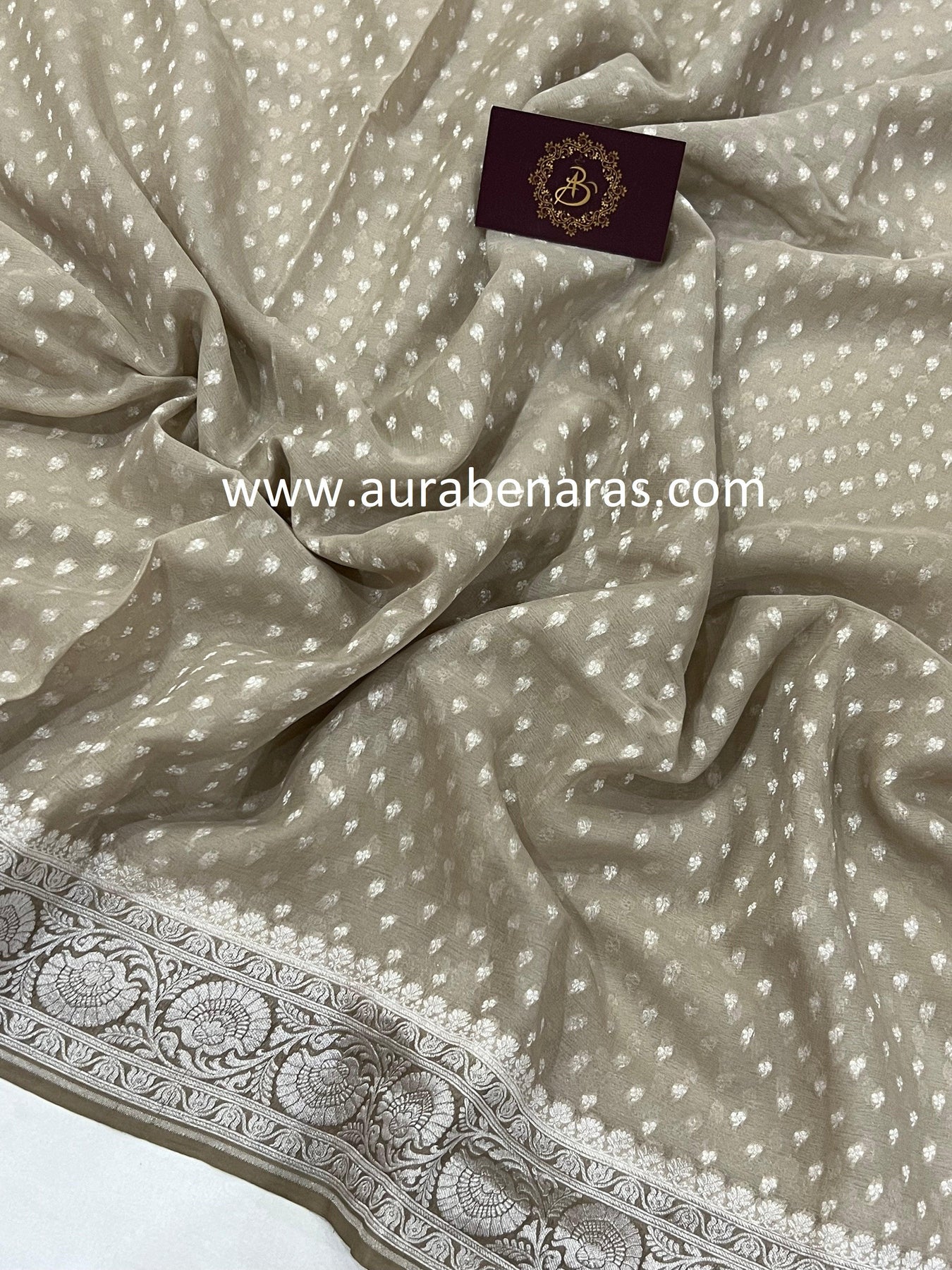 Grey Banarasi Handloom Pure Khaddi Georgette Saree