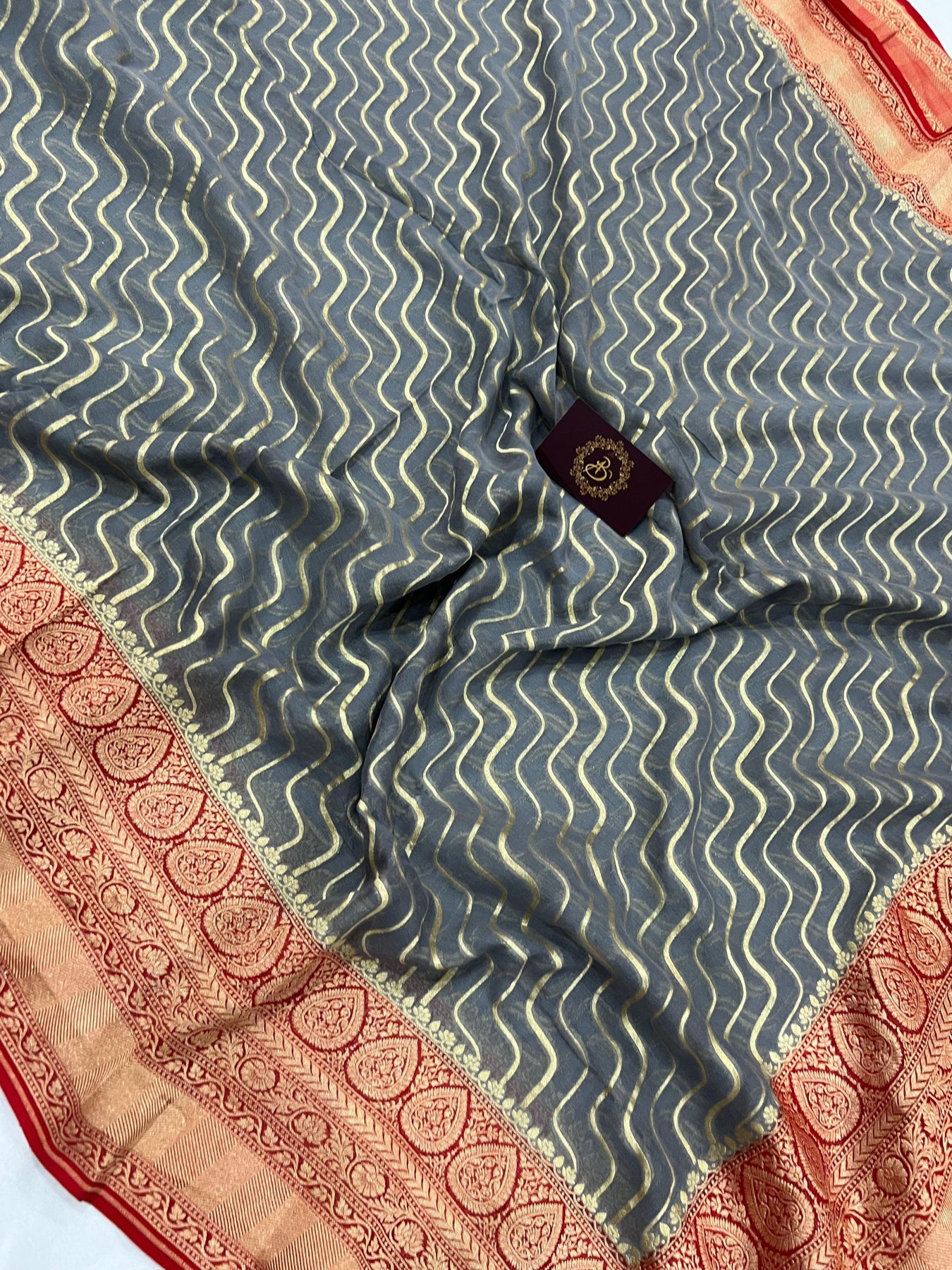 Grey Pure Banarasi Khaddi Georgette Saree - Aura Benaras