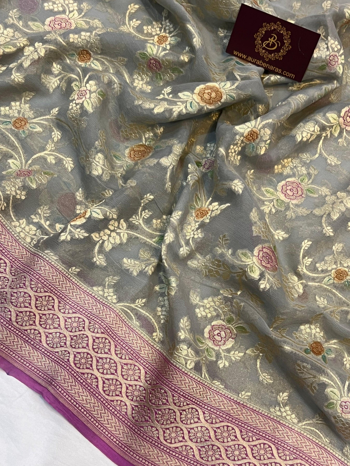 Grey Banarasi Khaddi Georgette Saree - Aura Benaras