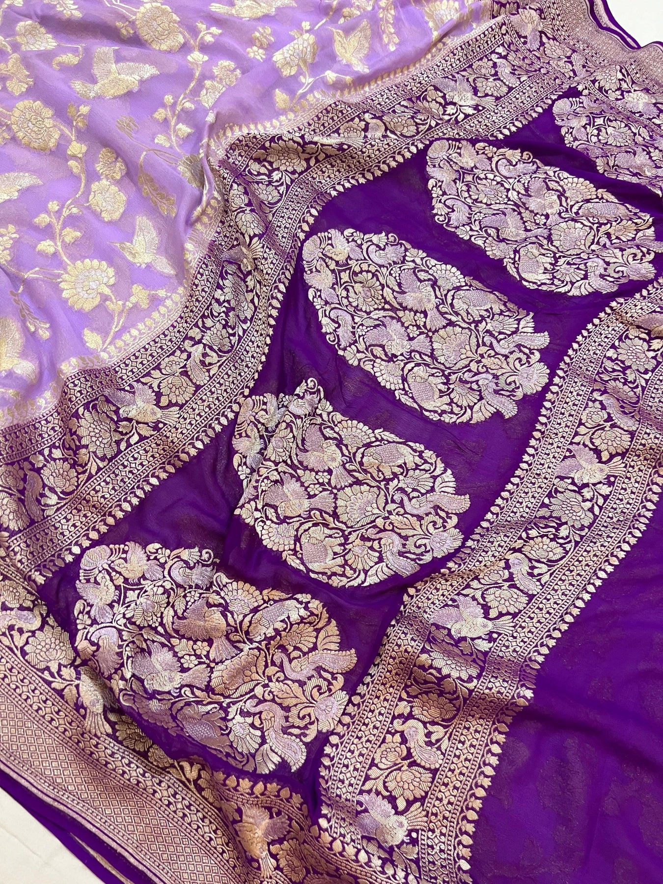Lavender Pure Banarasi Khaddi Georgette Saree