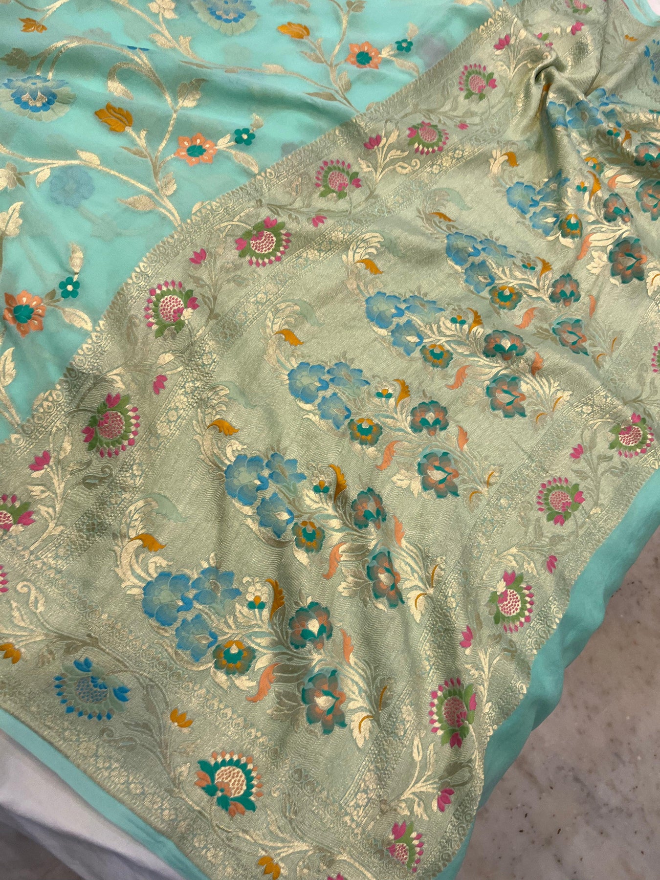 Light Blue Banarasi Khaddi Georgette Saree - Aura Benaras