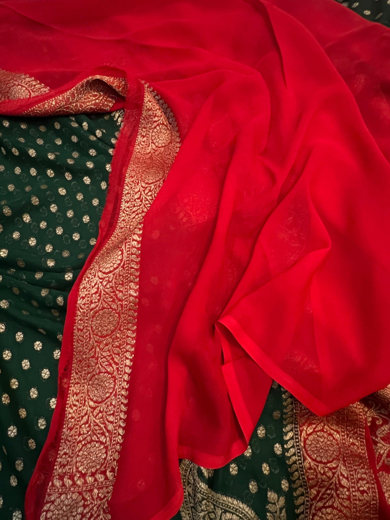 Bottle Green Pure Banarasi Khaddi Georgette Saree