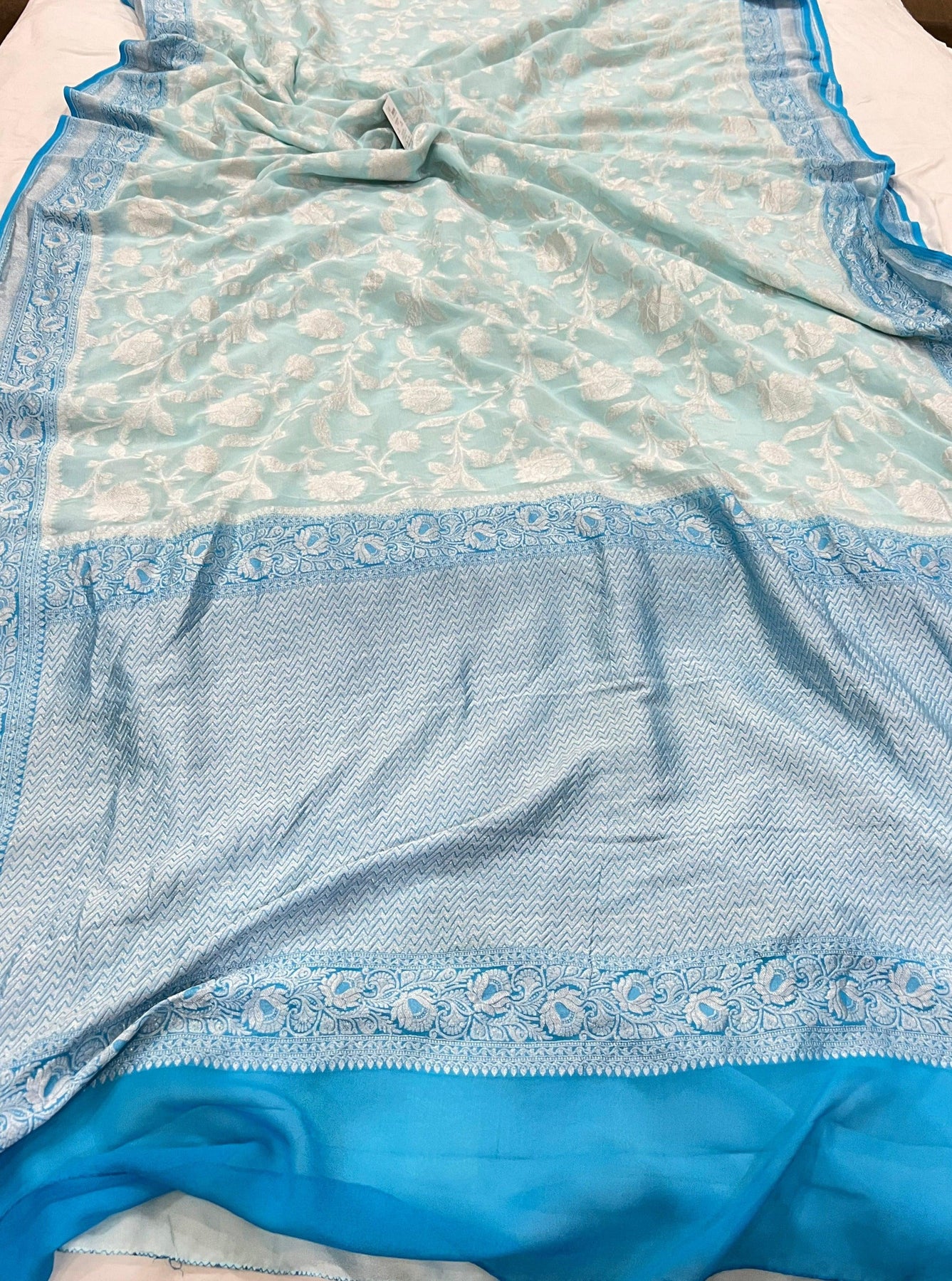 Pale Blue Banarasi Handloom Pure Khaddi Georgette Saree