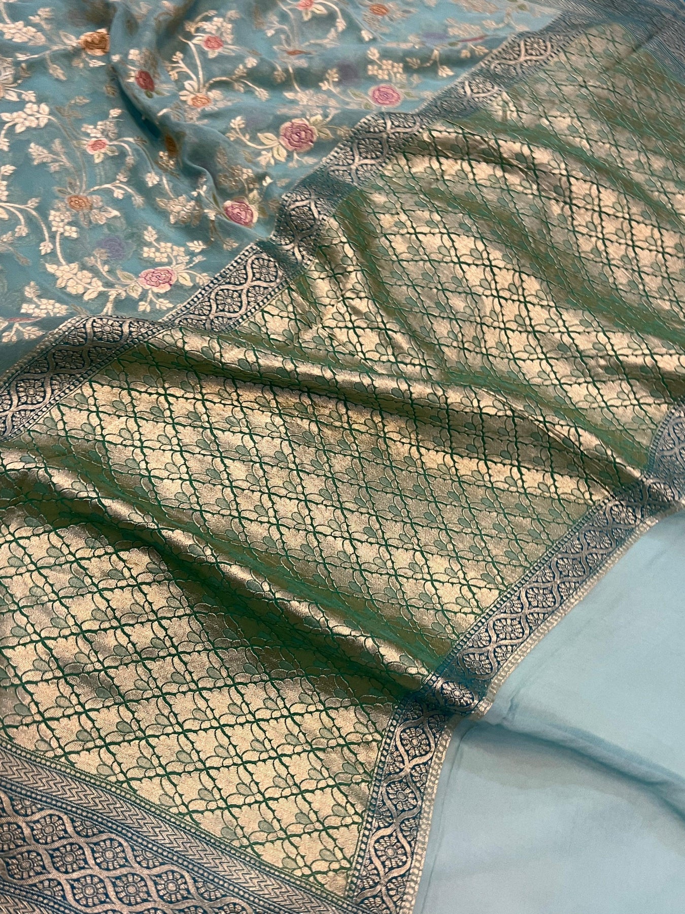 Pastel Blue Rangkaat Banarasi Khaddi Georgette Saree