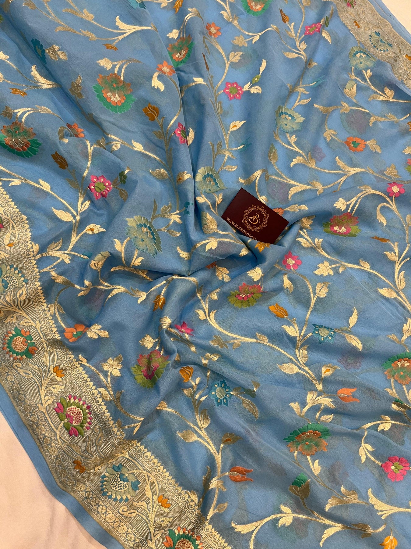 Powder Blue Banarasi Khaddi Georgette Saree - Aura Benaras