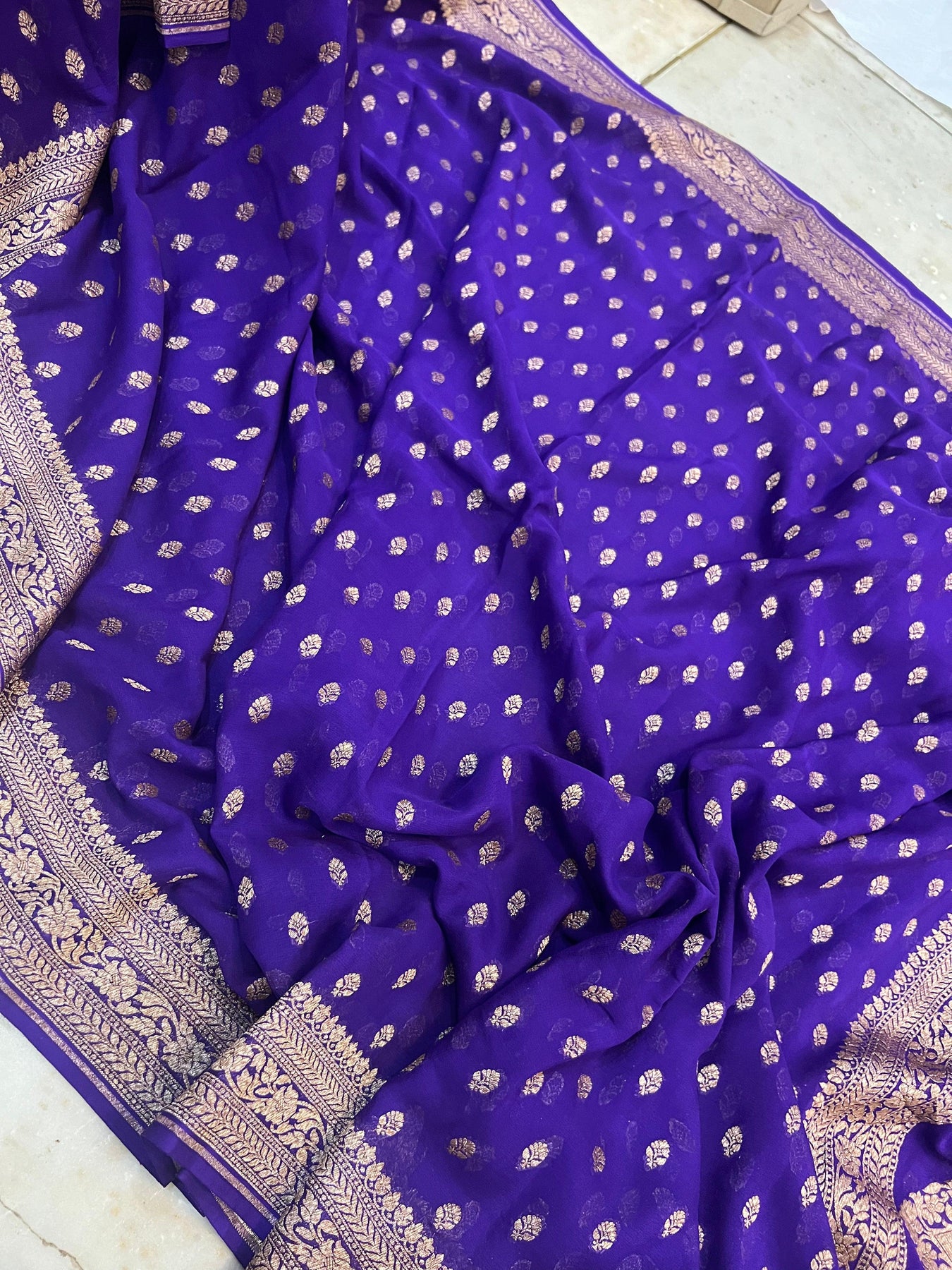 Purple Banarasi Handloom Pure Khaddi Georgette Saree