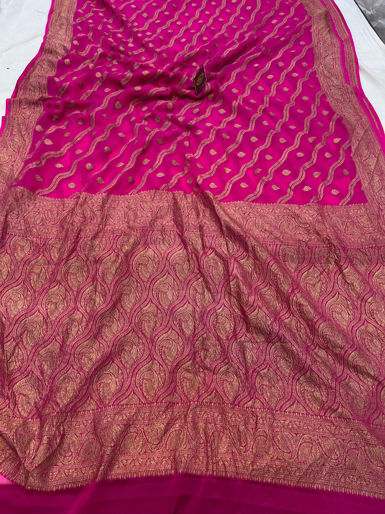 Rani Pink Pure Banarasi Khaddi Georgette Saree