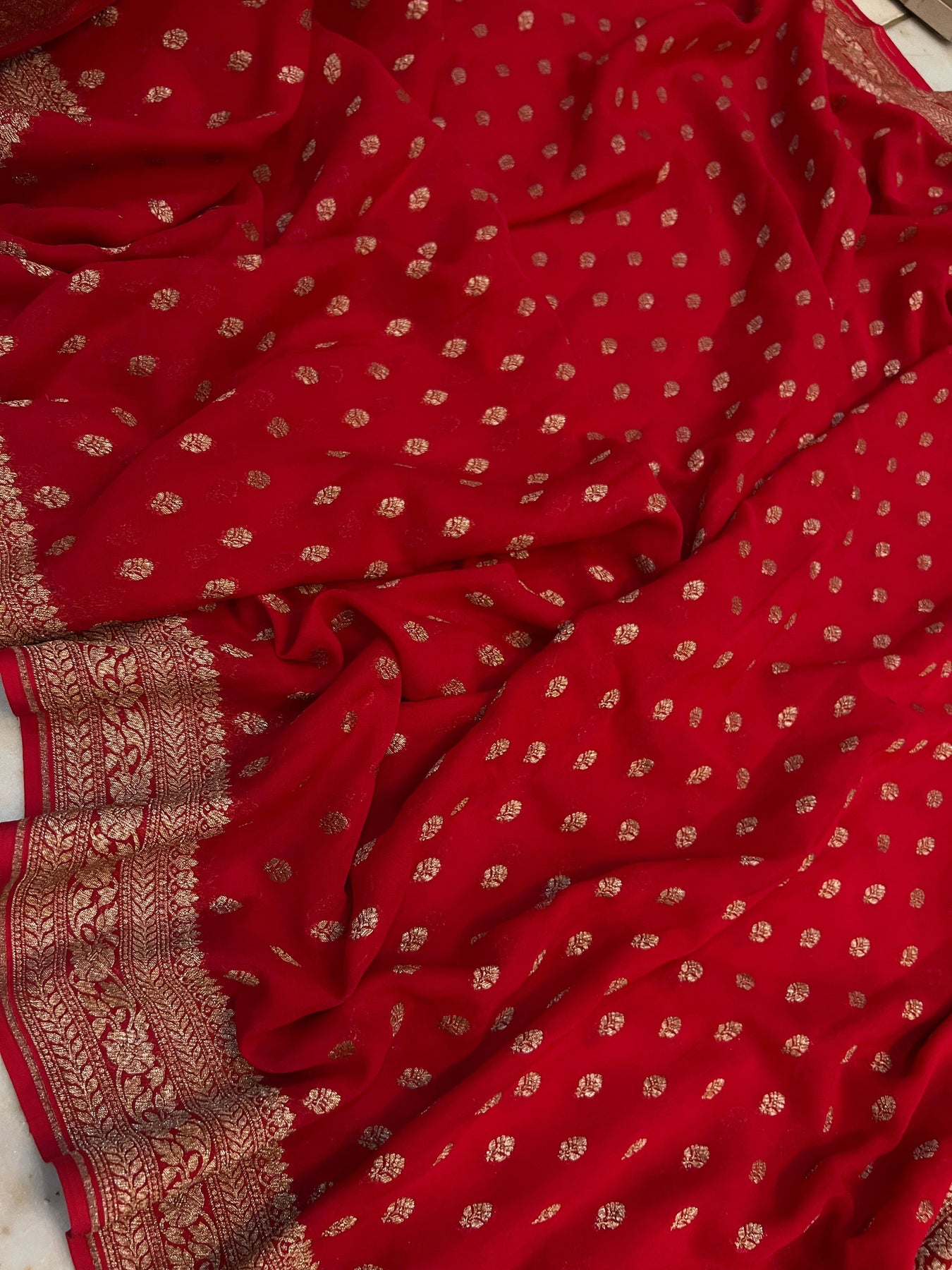 Red Banarasi Handloom Pure Khaddi Georgette Saree