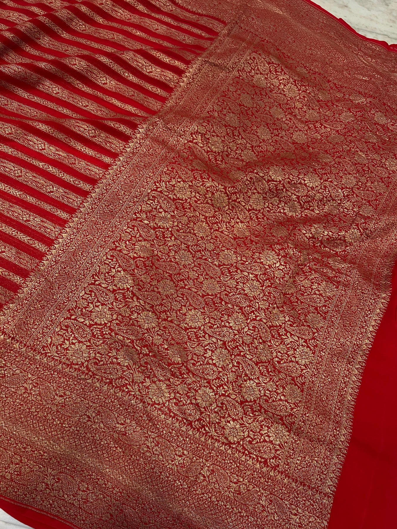 Red Banarasi Handloom Pure Khaddi Georgette Saree