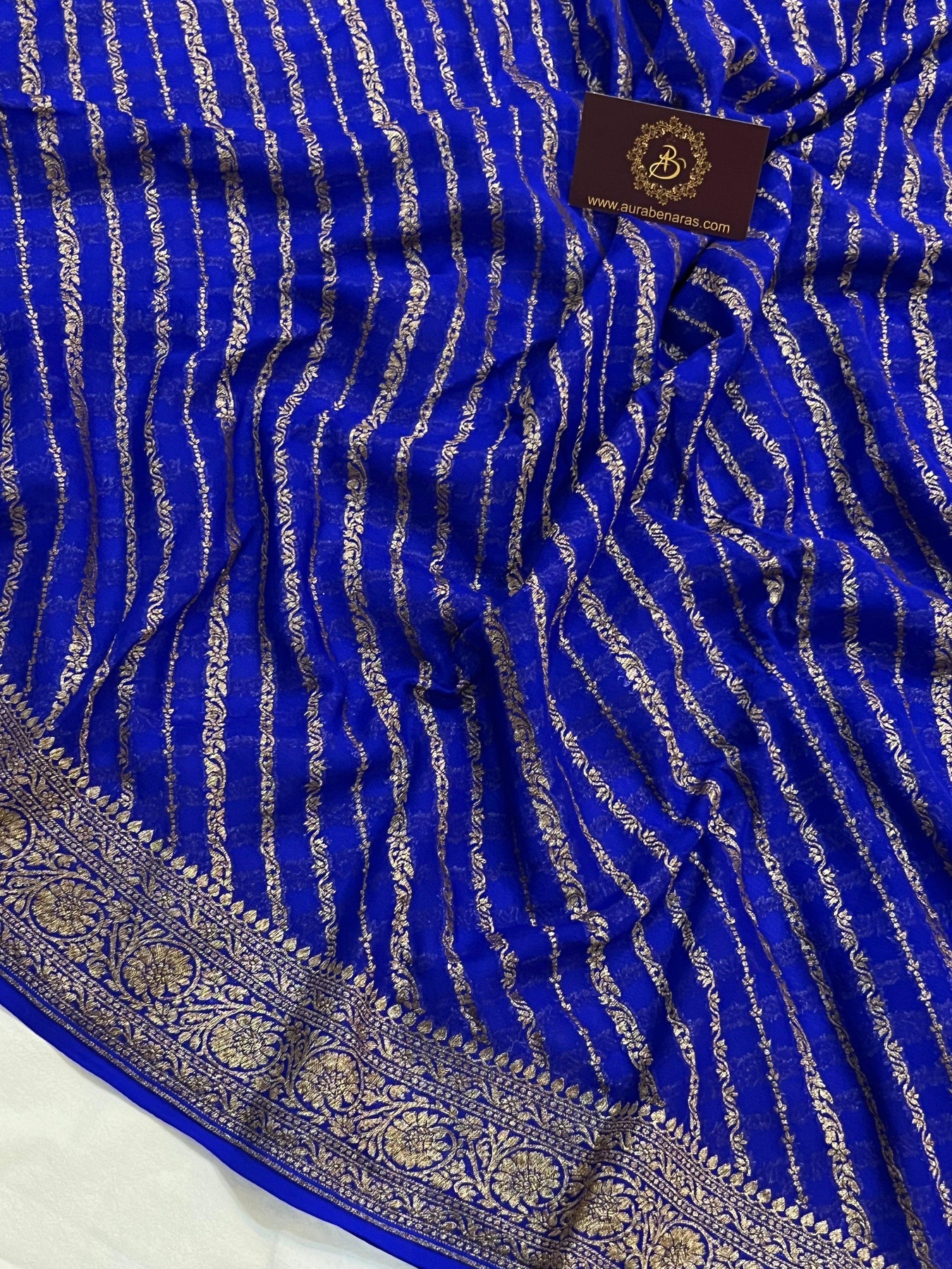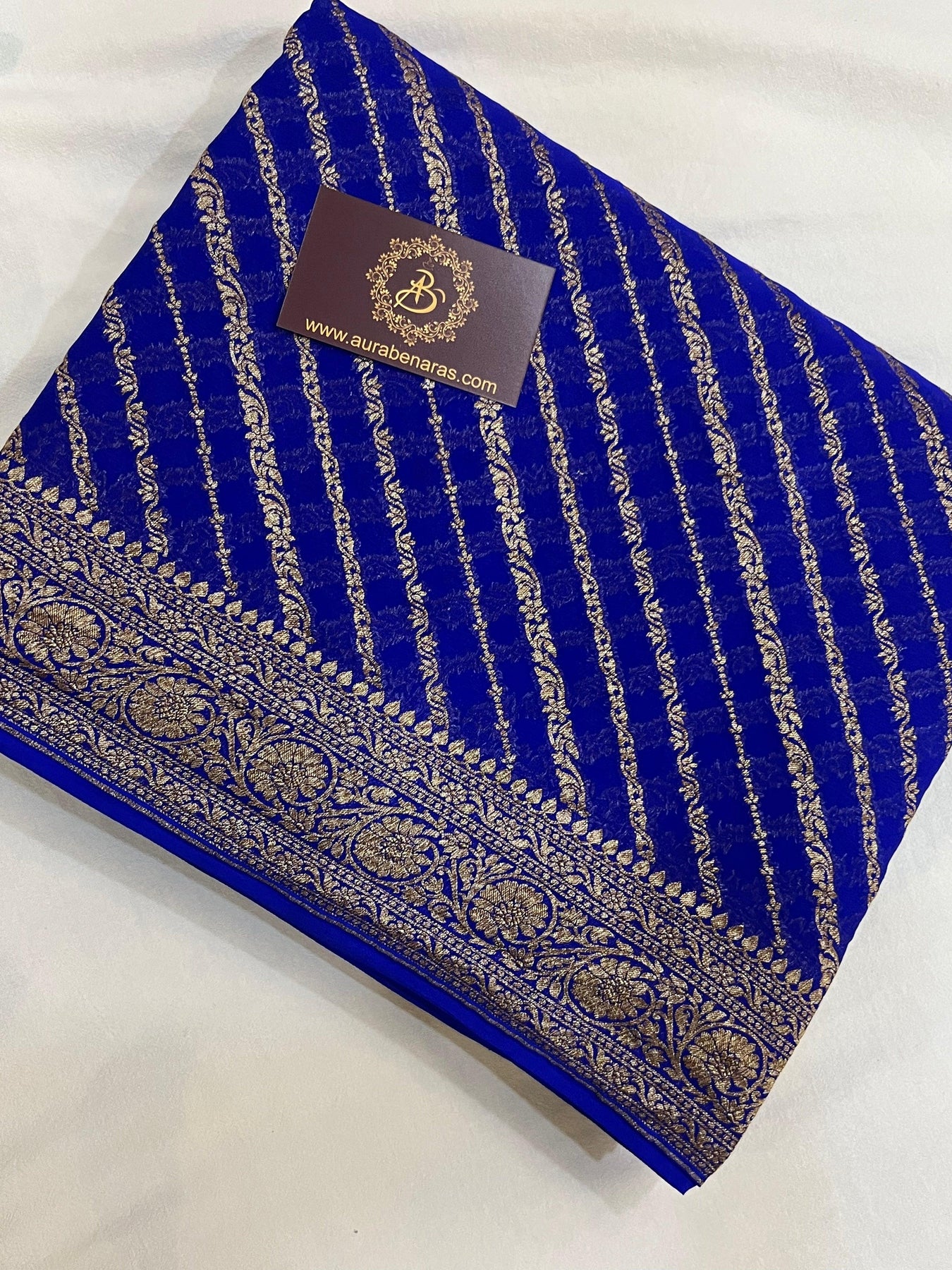 Royal Blue Banarasi Handloom Pure Georgette Silk Saree