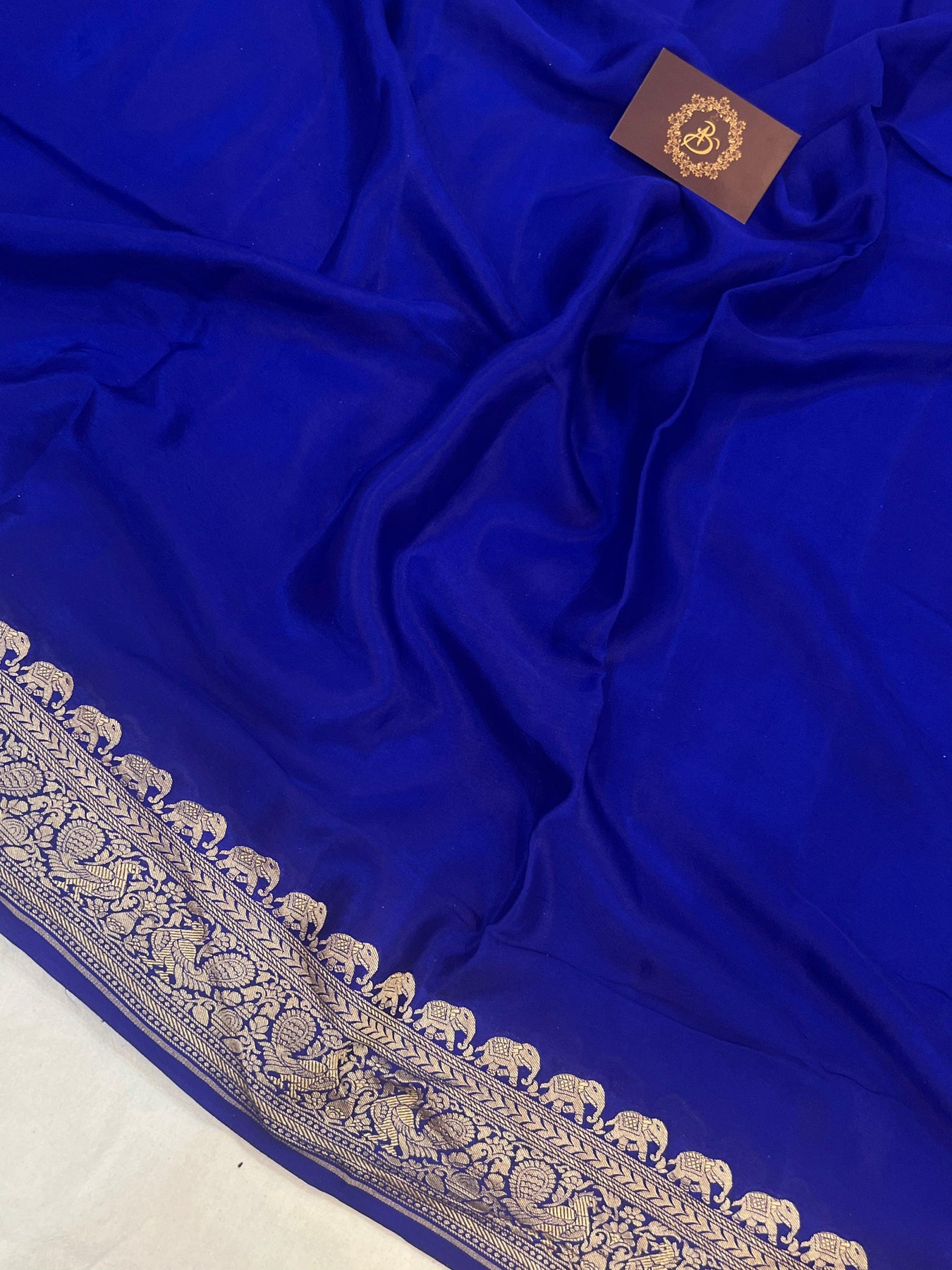 Royal Blue Pure Banarasi Khaddi Crepe Silk Saree