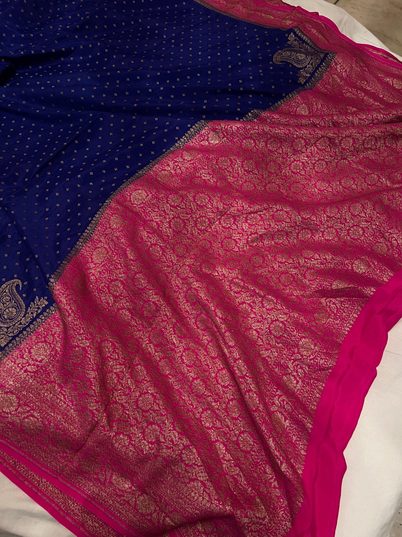 Royal Blue Pure Banarasi Khaddi Crepe Silk Saree