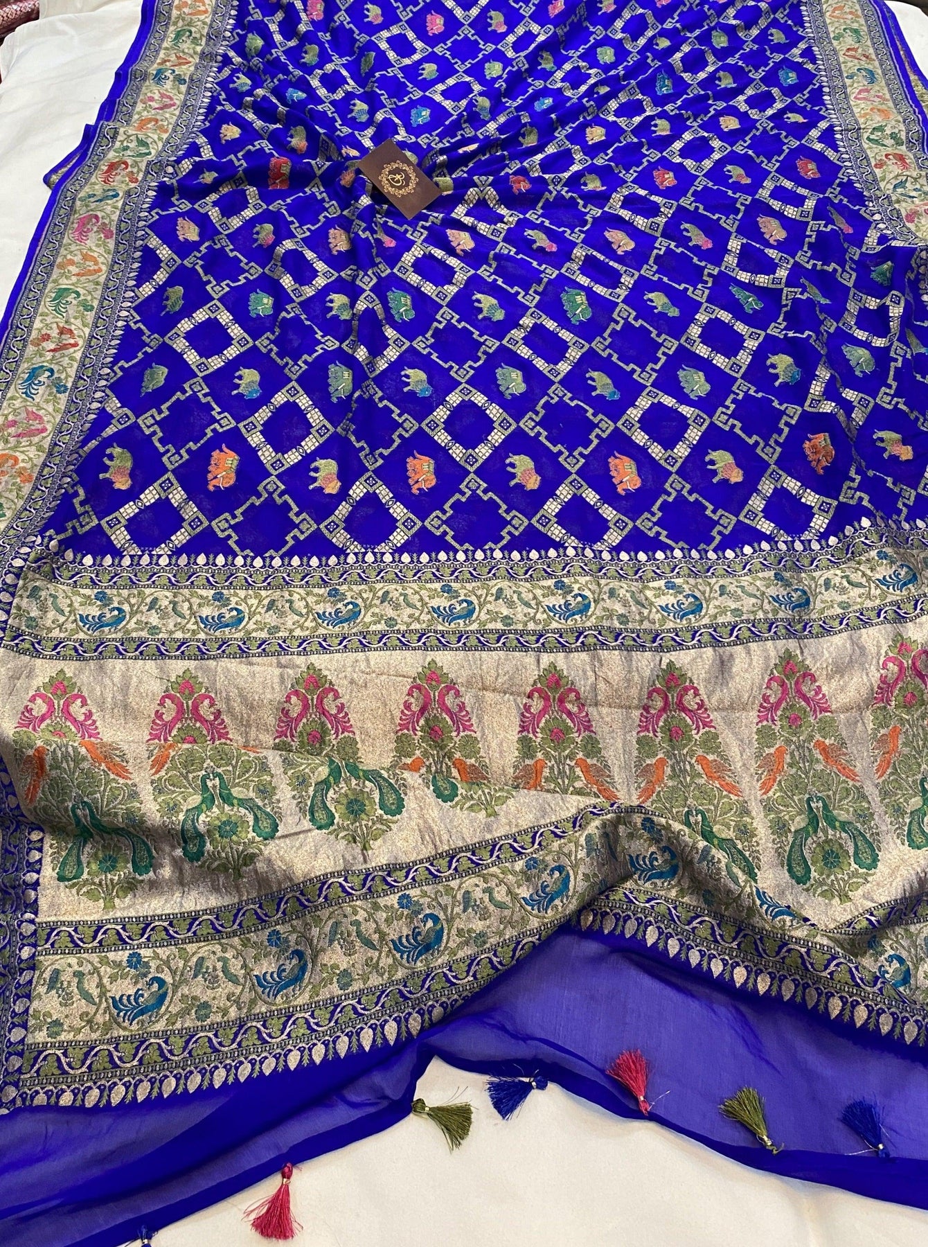 • Color - An enchanting royal blue with scintillating palla and border.