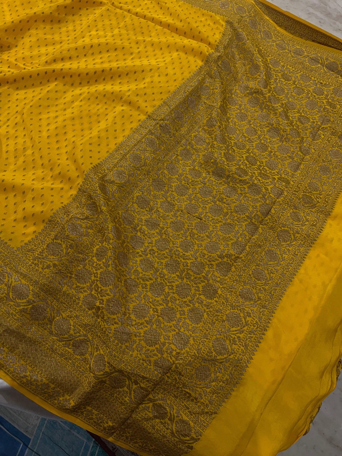 Yellow Pure Banarasi Khaddi Crepe Silk Saree