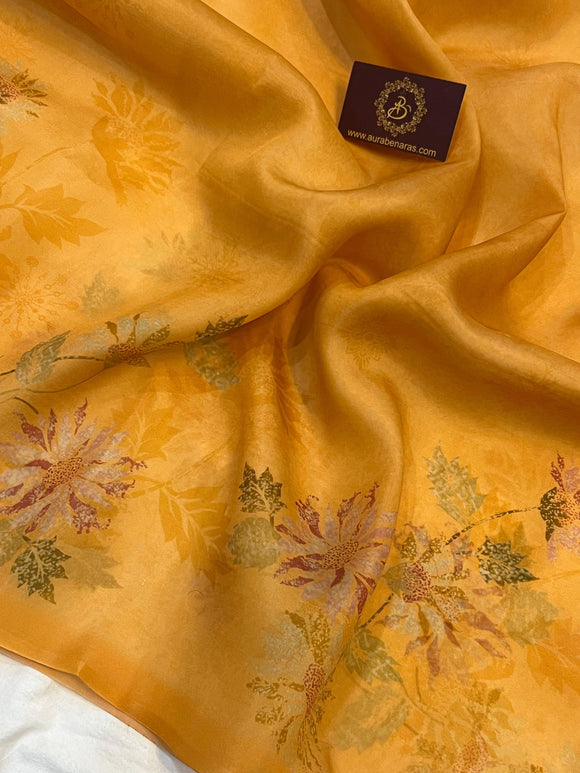 Yellow Orange Shaded Pure Kora Silk Handloom Banarasi Saree