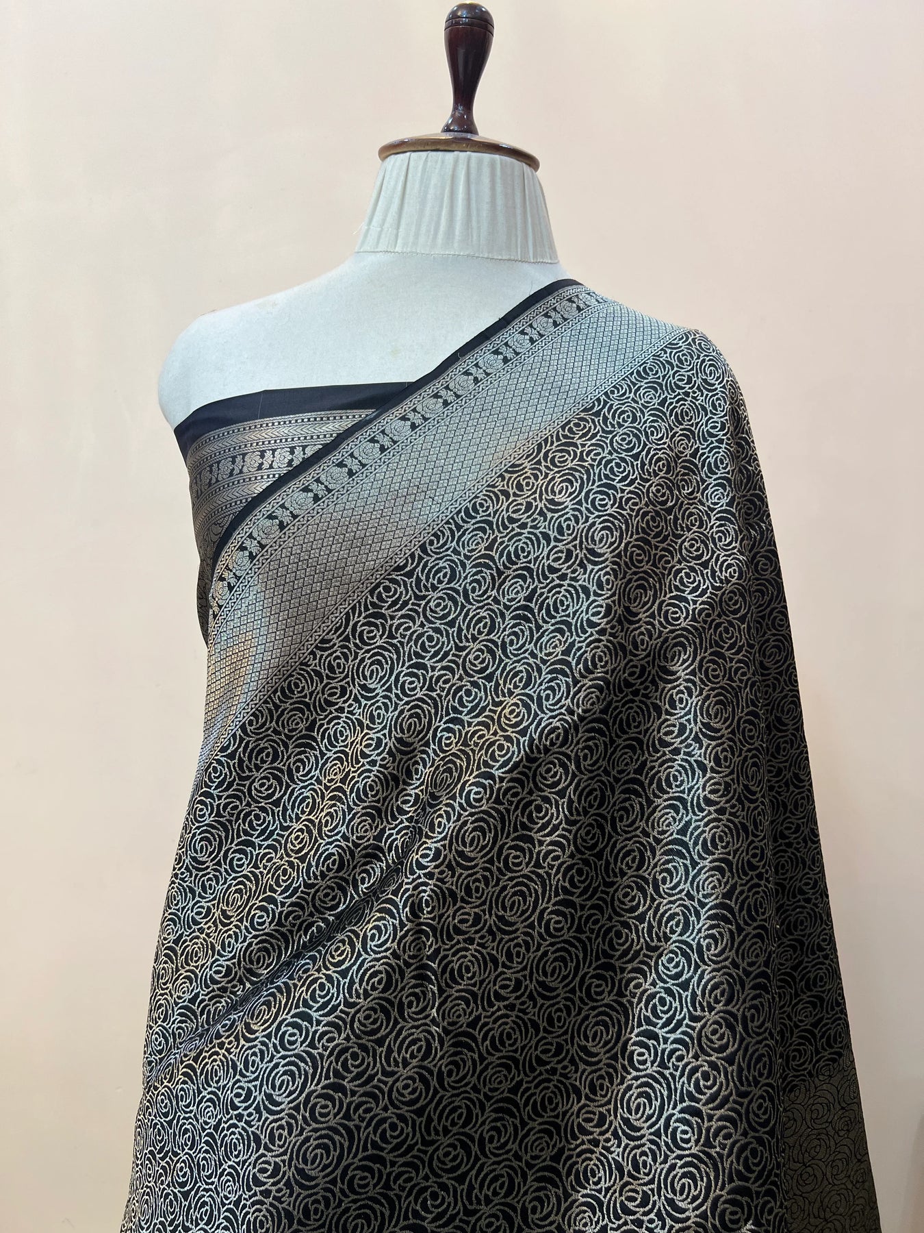 • Color - Black Banarasi saree.