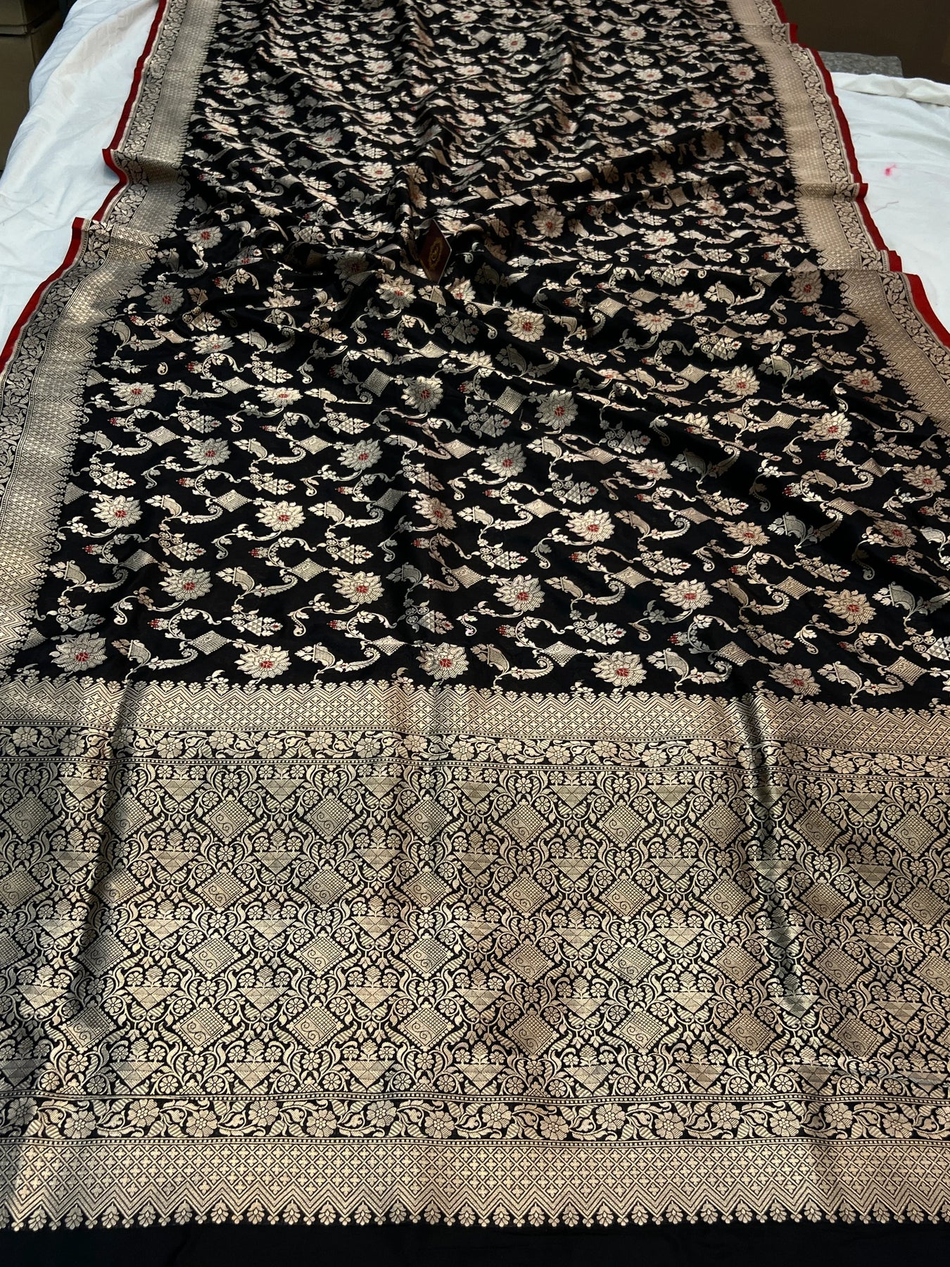 - Color - Black Banarasi saree.