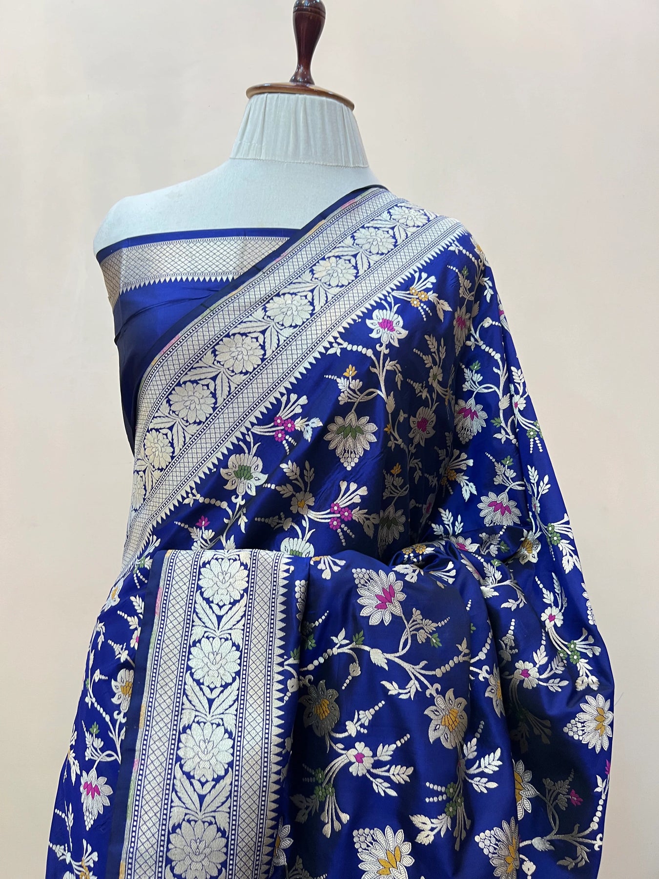 Royal Blue Pure Katan silk Handloom Banarasi Saree
