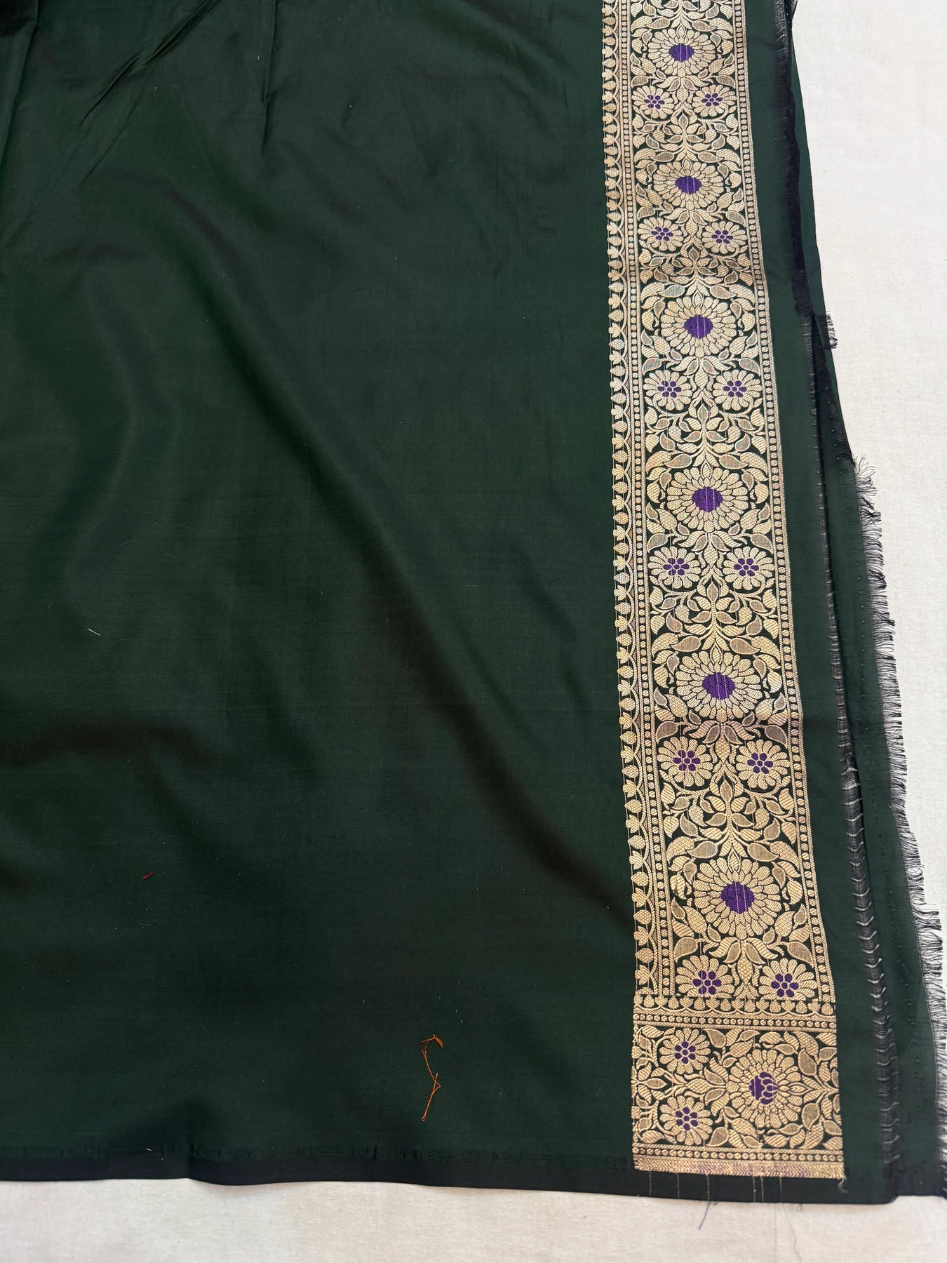 Bottle Green Pure Katan silk Handloom Banarasi Saree