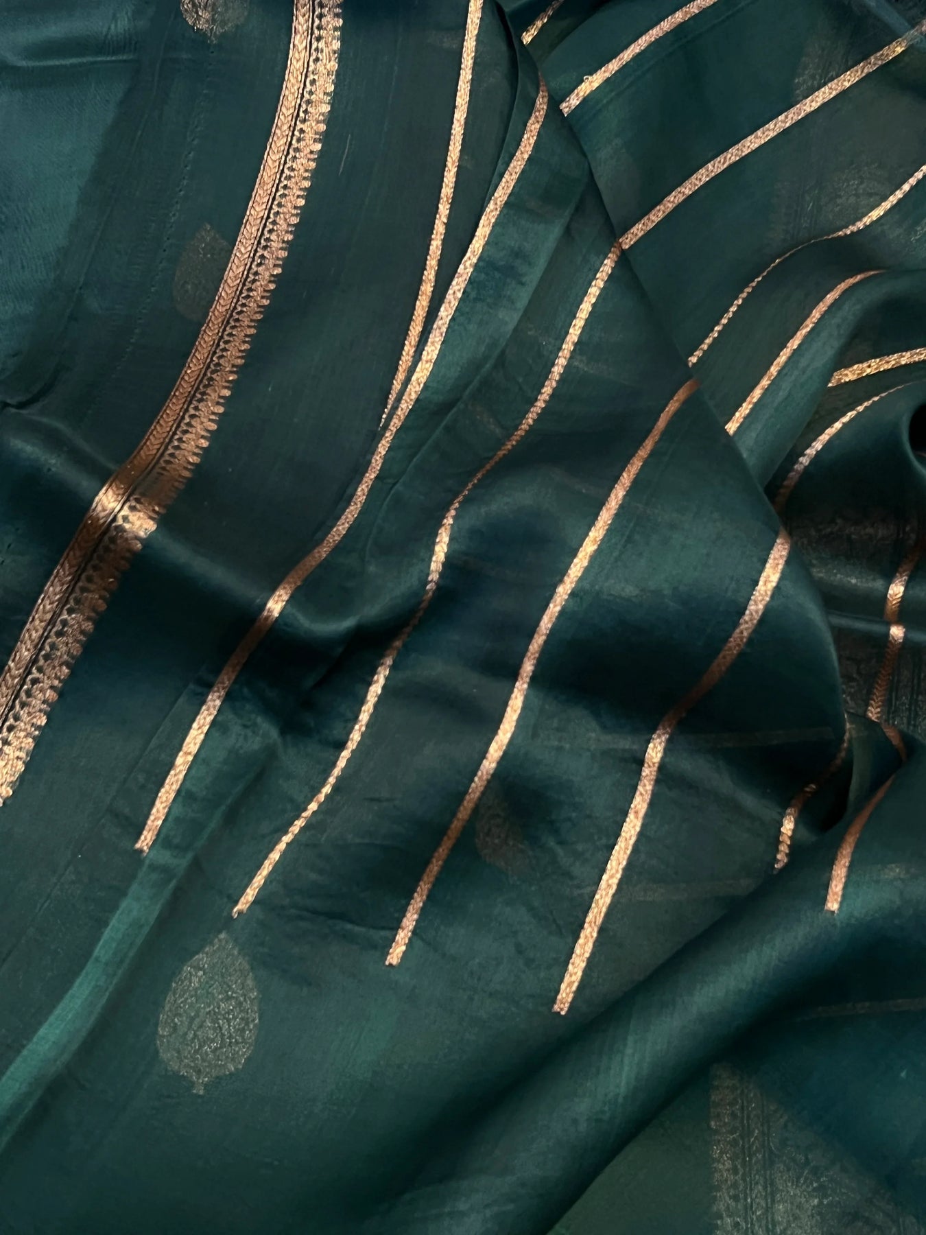 Bottle Green Pure Kora Silk Handloom Banarasi Saree