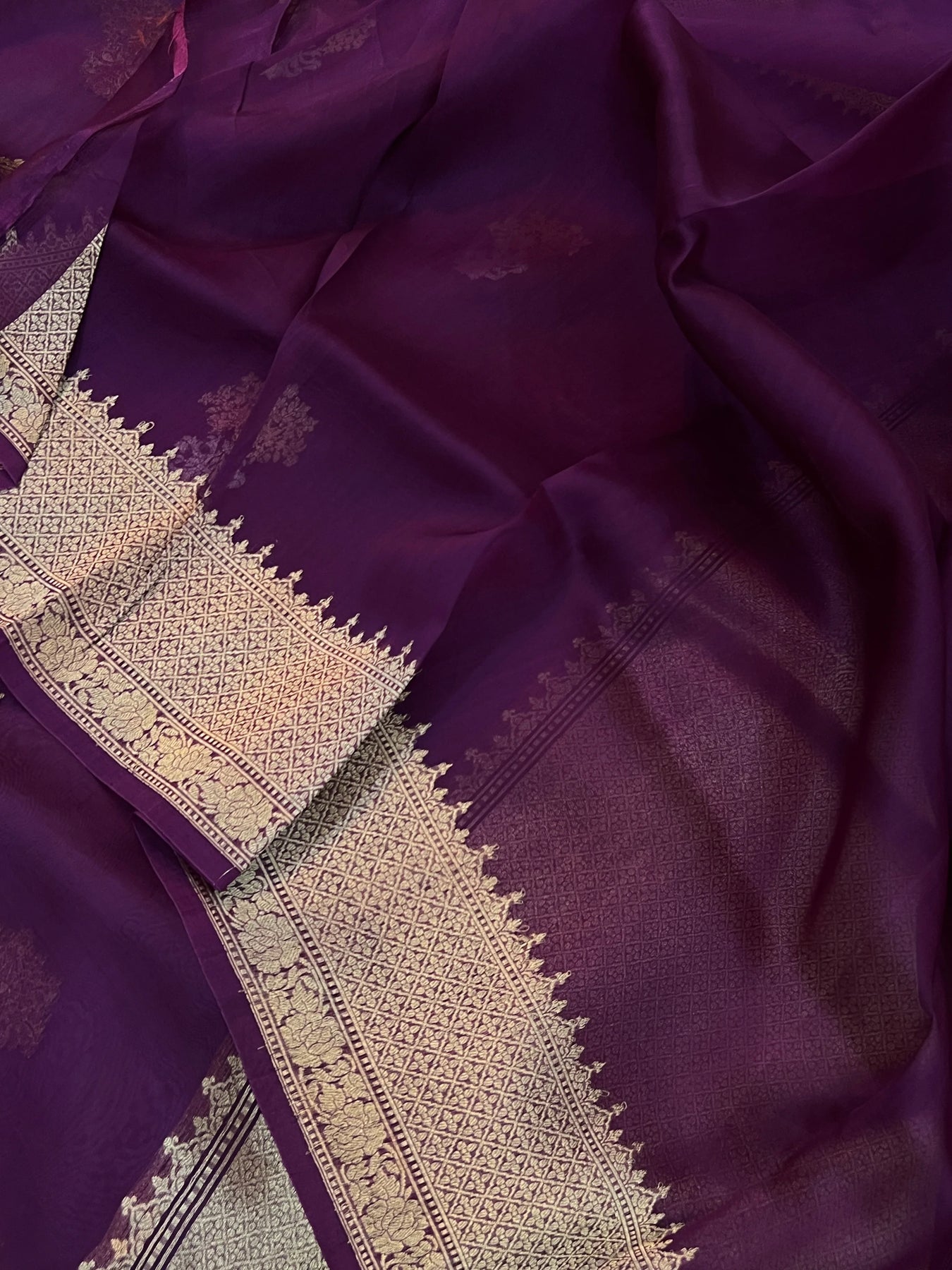 Hibiscus Shade Pure Kora Silk Handloom Banarasi Saree