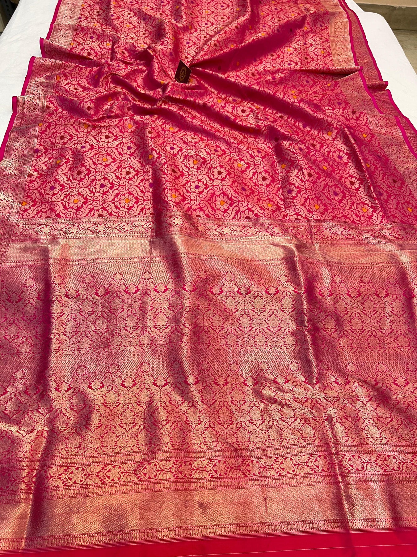 - Color - Hot Pink Banarasi saree.