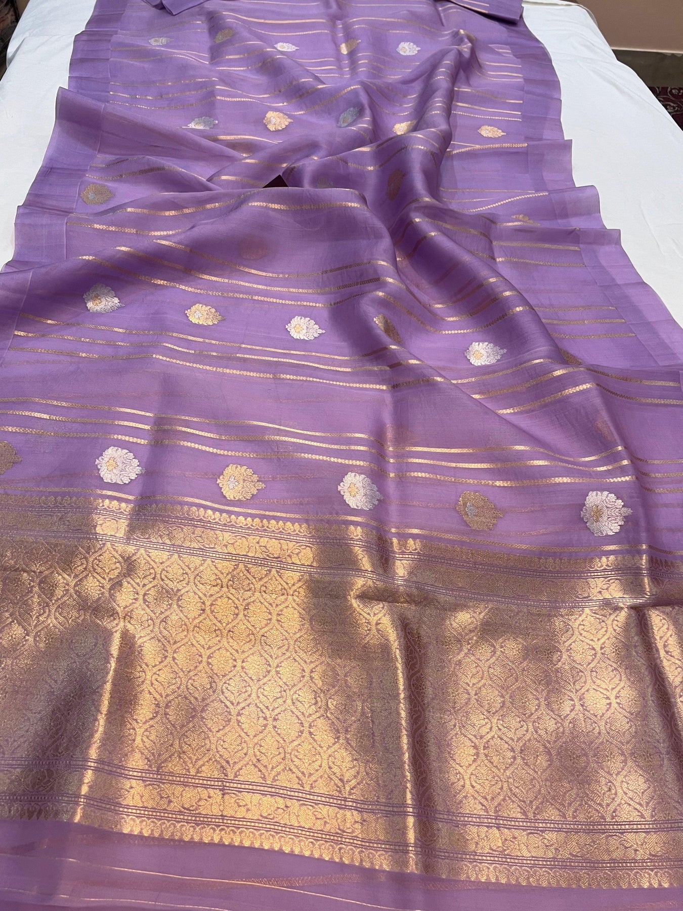 Lavender Banarasi Handloom Kora Silk Saree - Aura Benaras