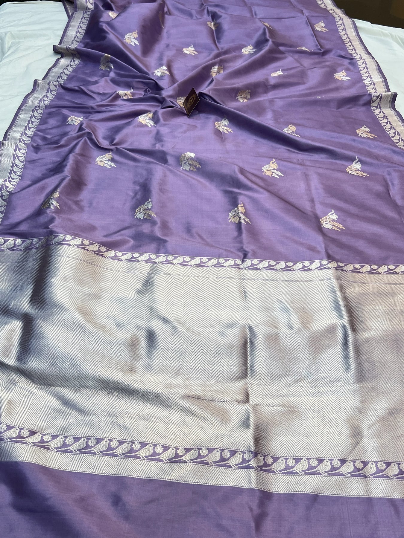Lavender Pure Katan Silk Handloom Banarasi Saree