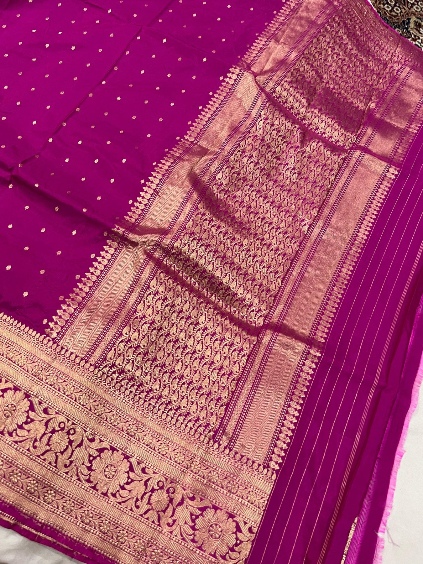 - Color - An enchanting Magenta with scintillating palla and border.