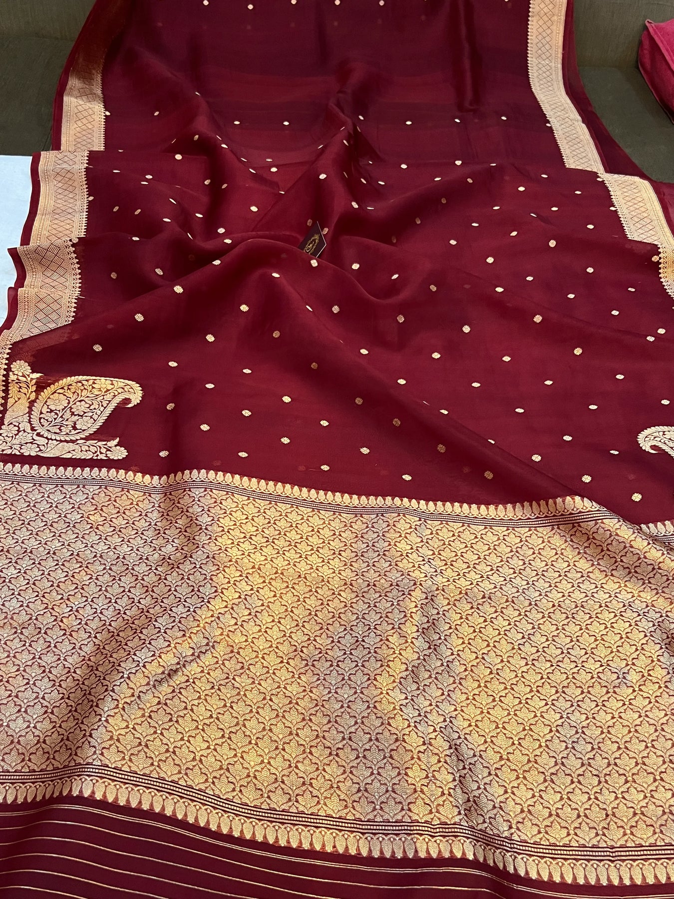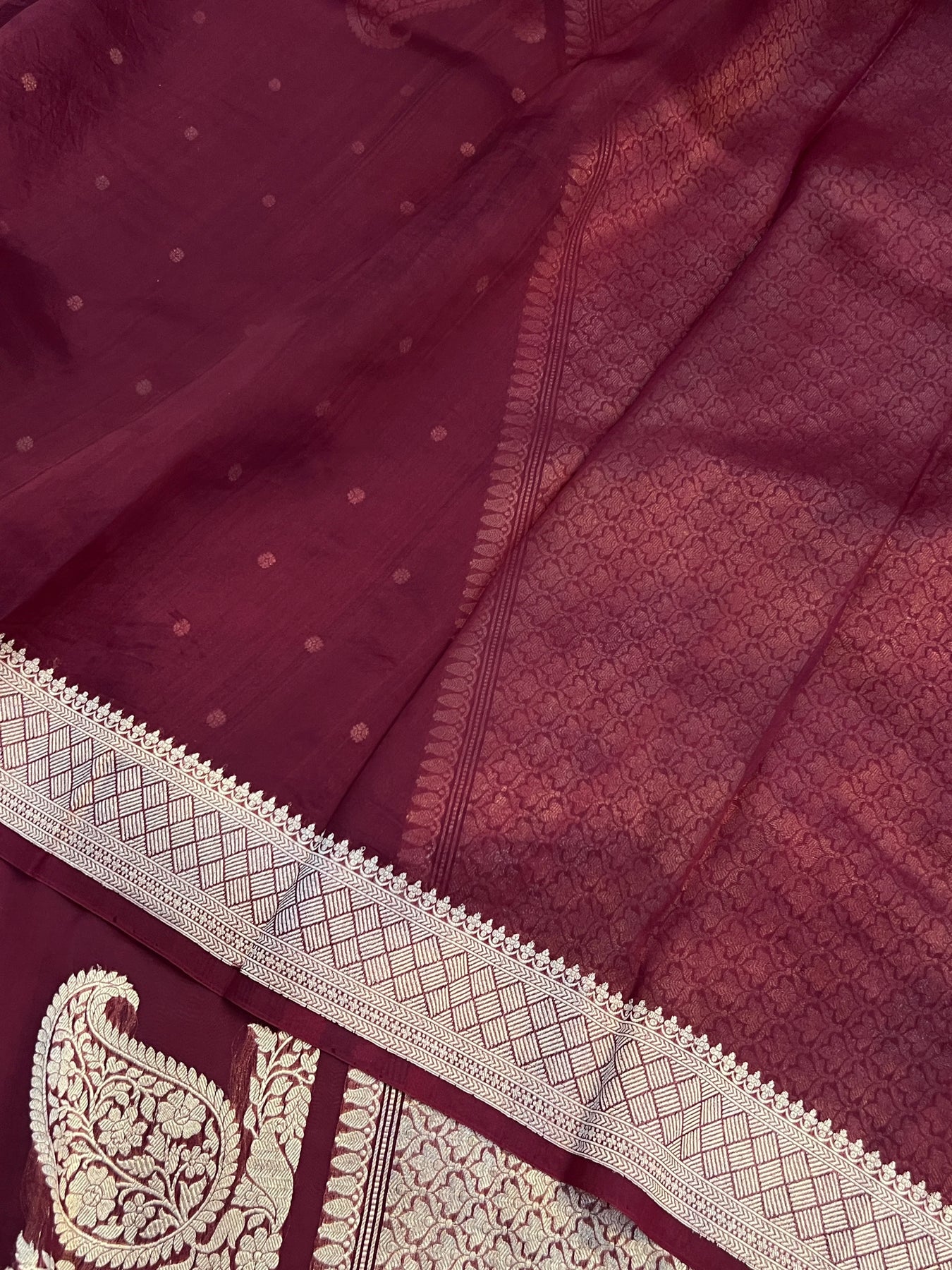 Pre Order :: Maroon Pure Kora Silk Handloom Banarasi Saree