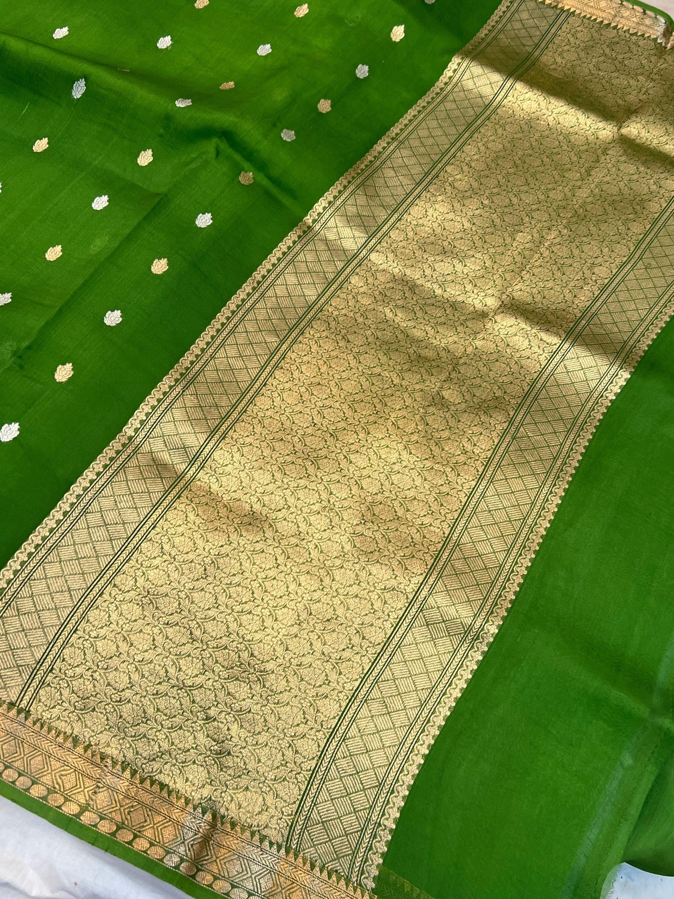 Mehendi Green Kora Silk Handloom Banarasi Saree