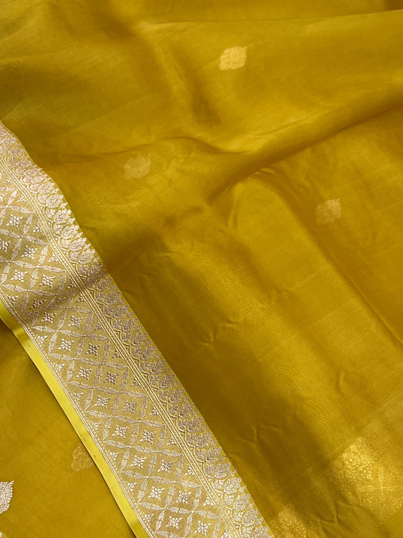 Mustard Yellow Pure Kora Silk Handloom Banarasi Saree