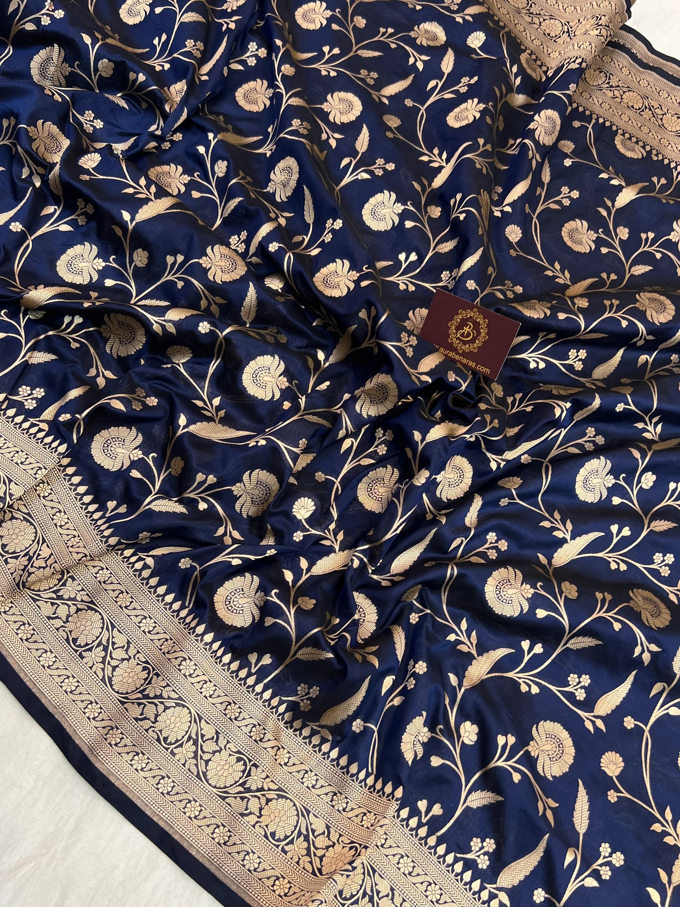 Navy Blue Pure Katan silk Handloom Banarasi Saree