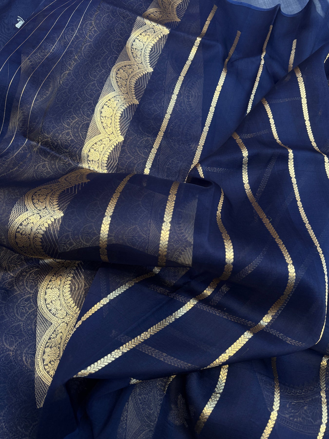 Navy Pure Kora Silk Handloom Banarasi Saree