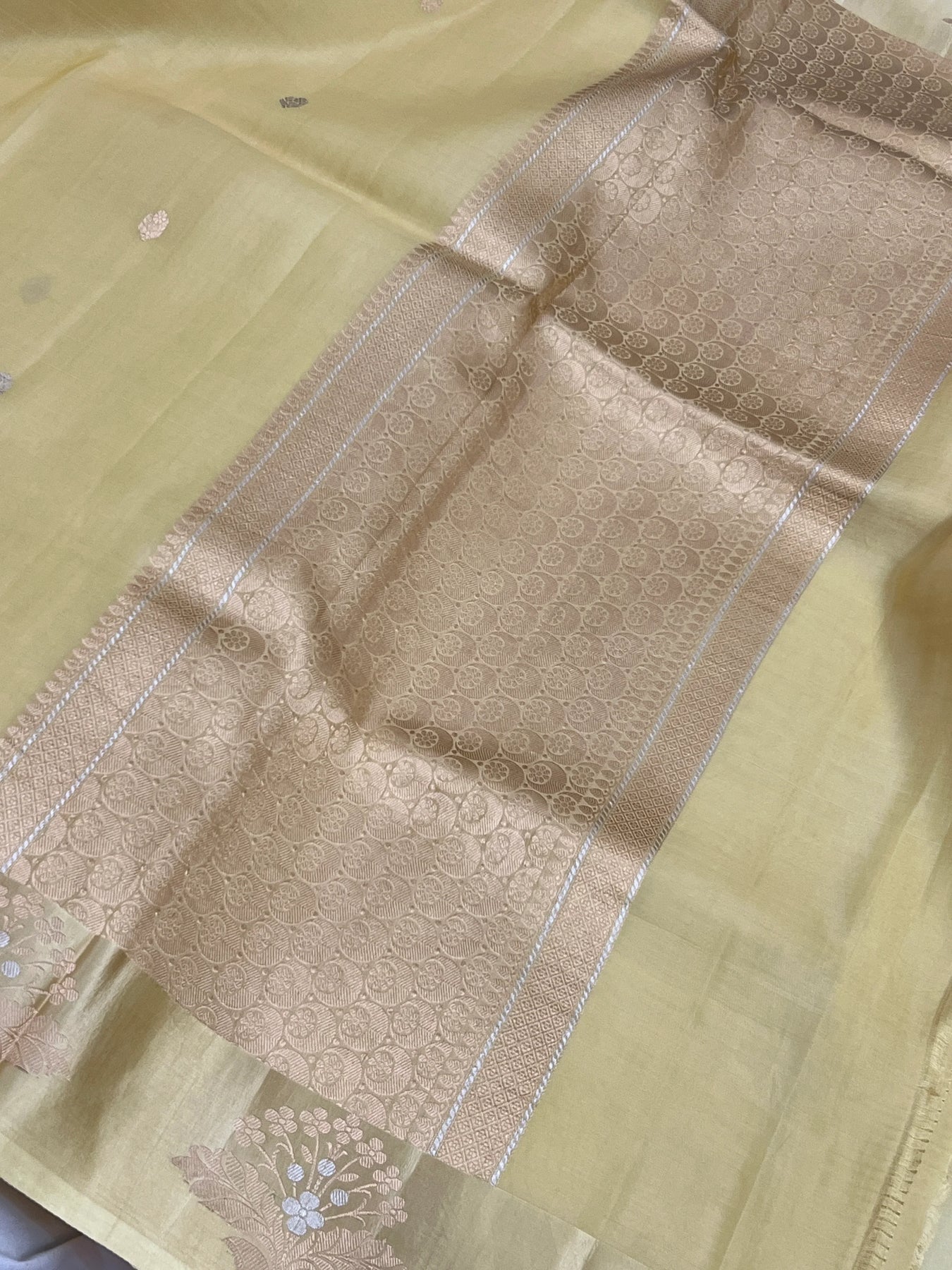 Pastel Yellow Pure Katan Organza Silk Handloom Banarasi Saree