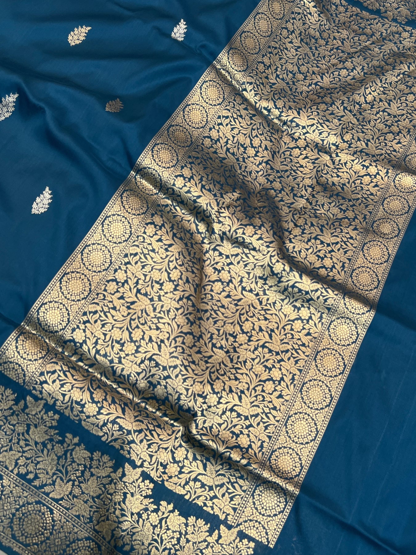 - Color - Rama Blue Banarasi saree.