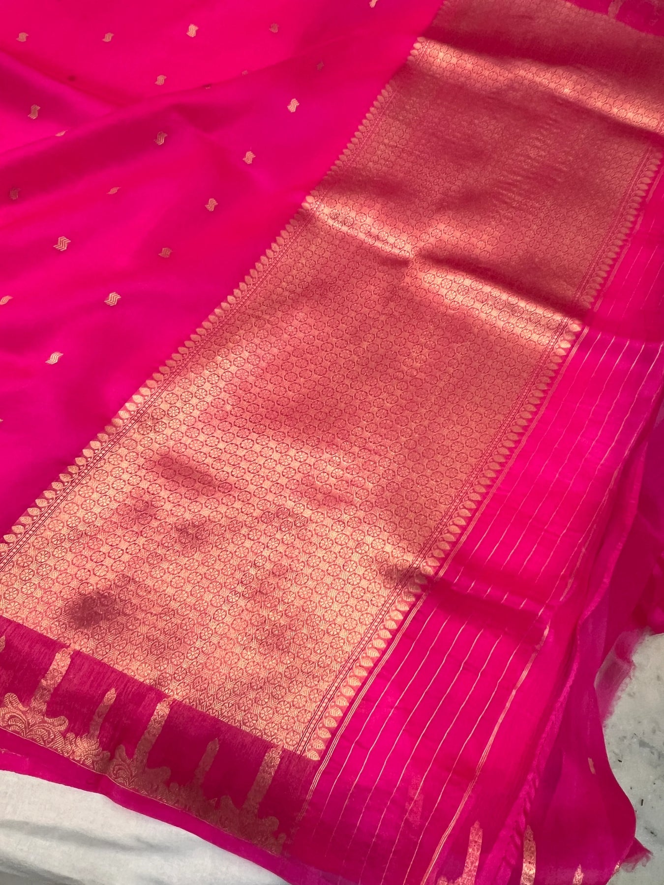 Hot Pink Pure Kora Silk Handloom Banarasi Saree