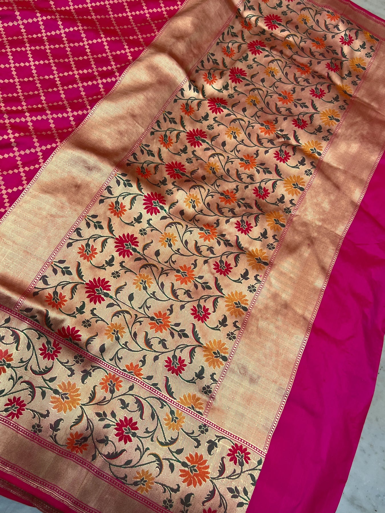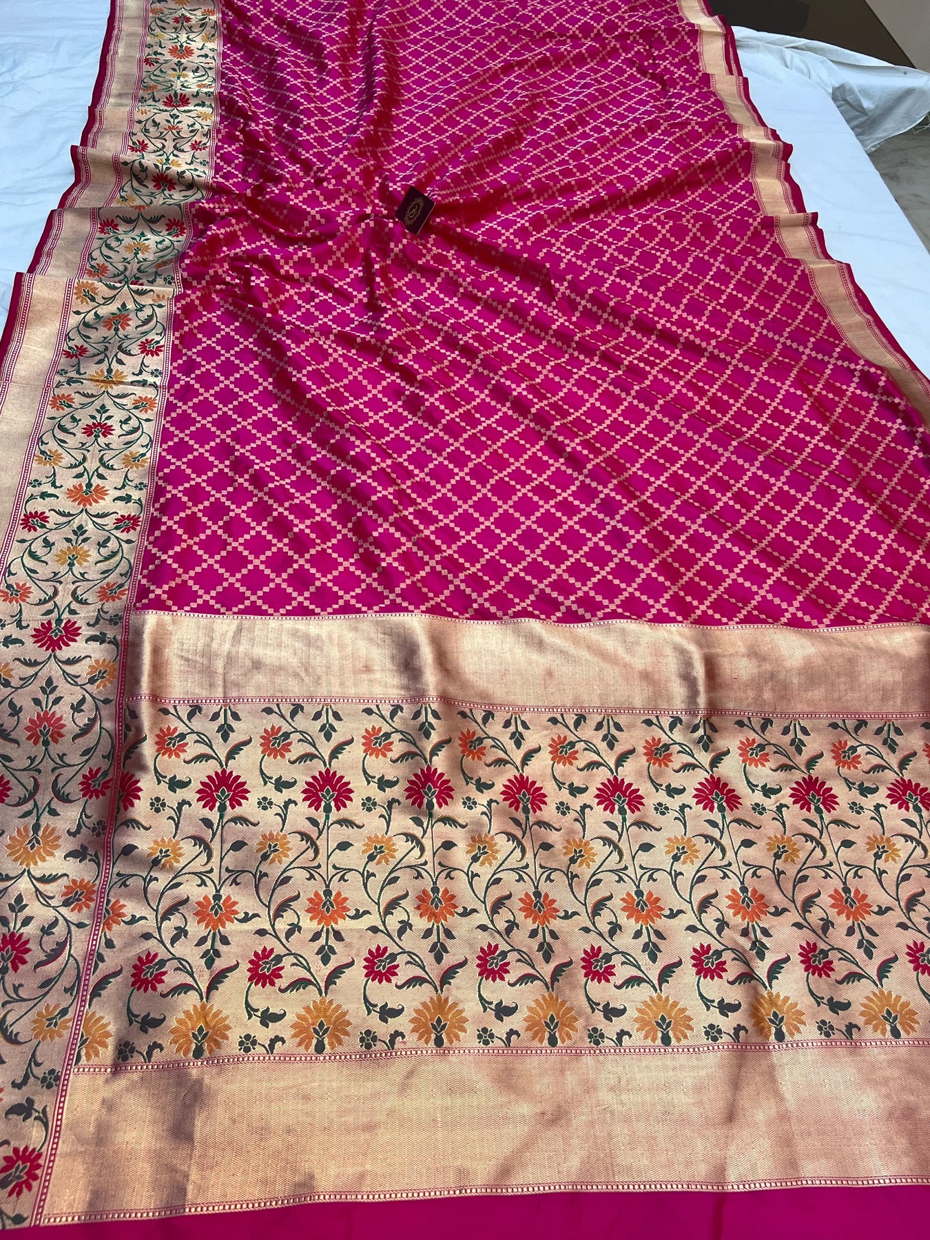 Rani Pink Pure Banarasi Handloom Katan Silk Saree