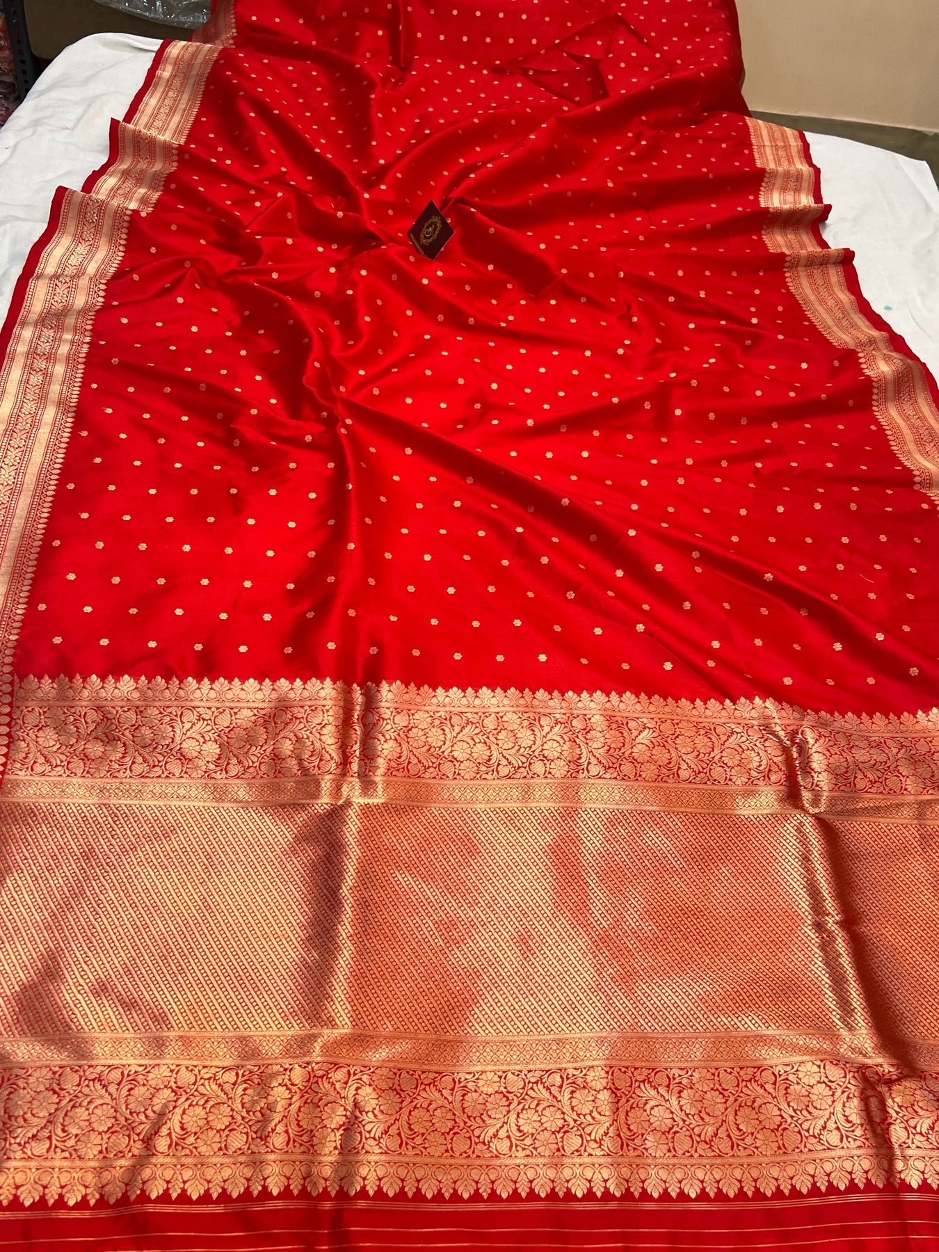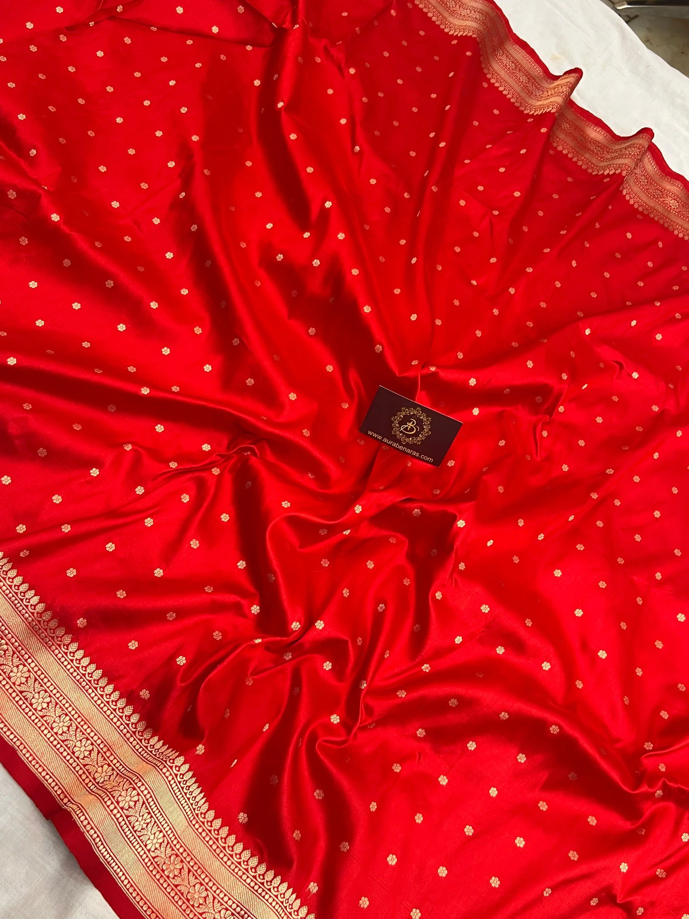 Red Pure Katan Silk Banarasi Saree with Fekhwa Floral Motifs