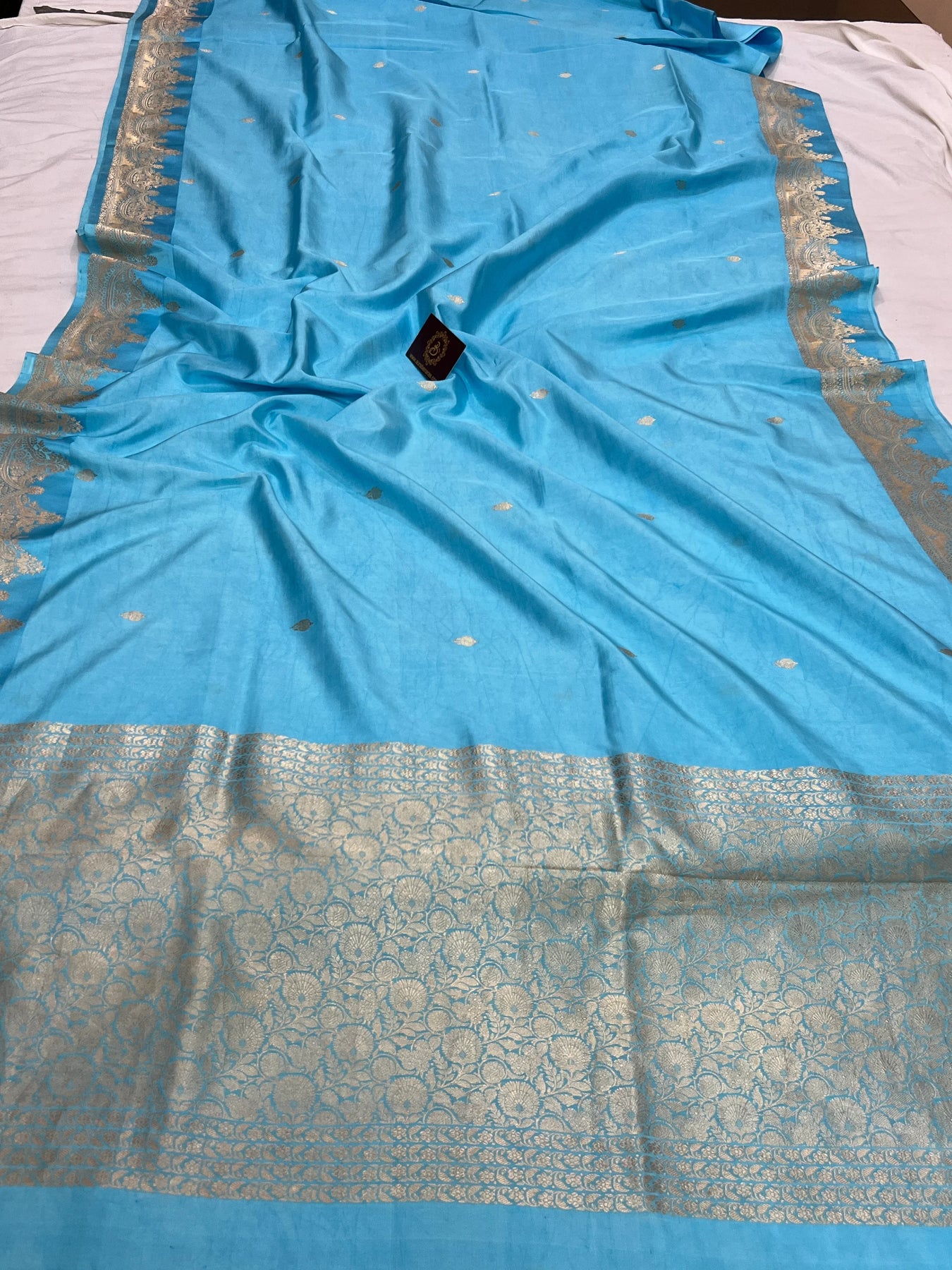 Sky Blue Pure Katan Silk Banarasi Handloom Saree