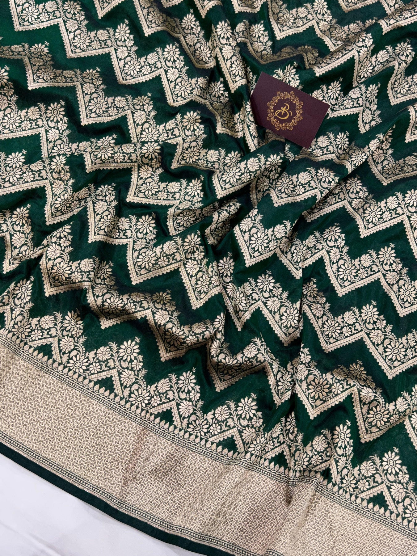 Bottle Green Pure Banarasi Handloom Katan Silk Saree