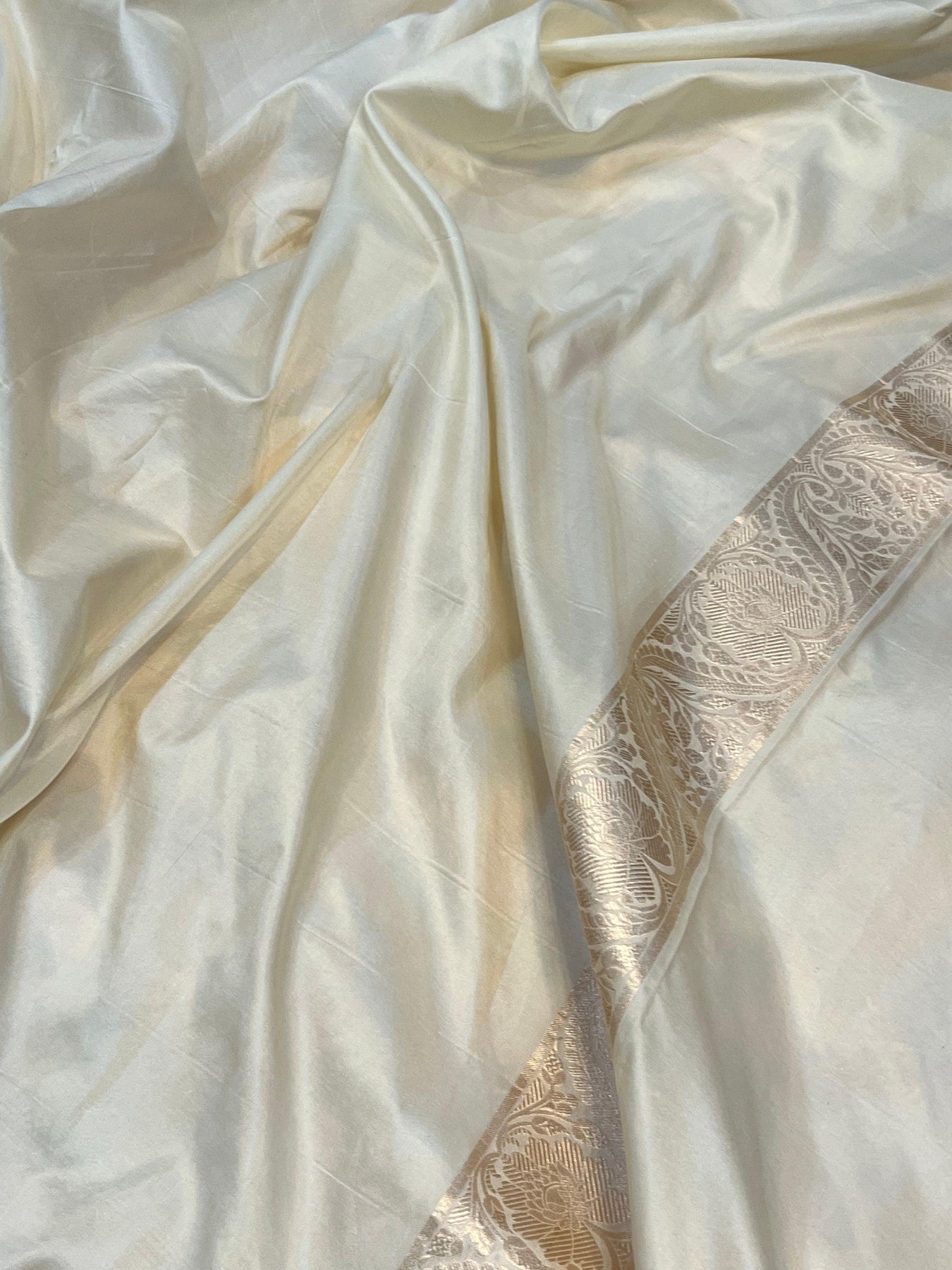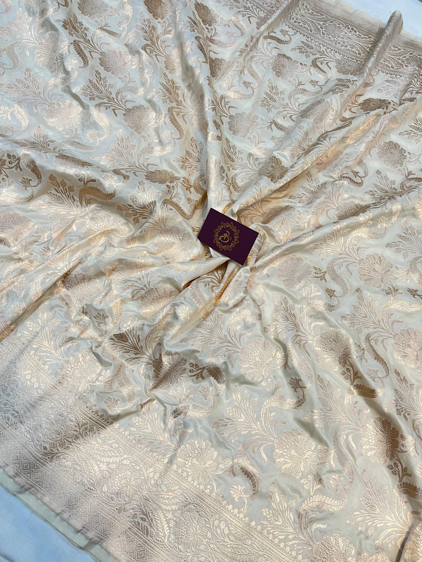 Cream Pure Banarasi Handloom Katan Silk Saree