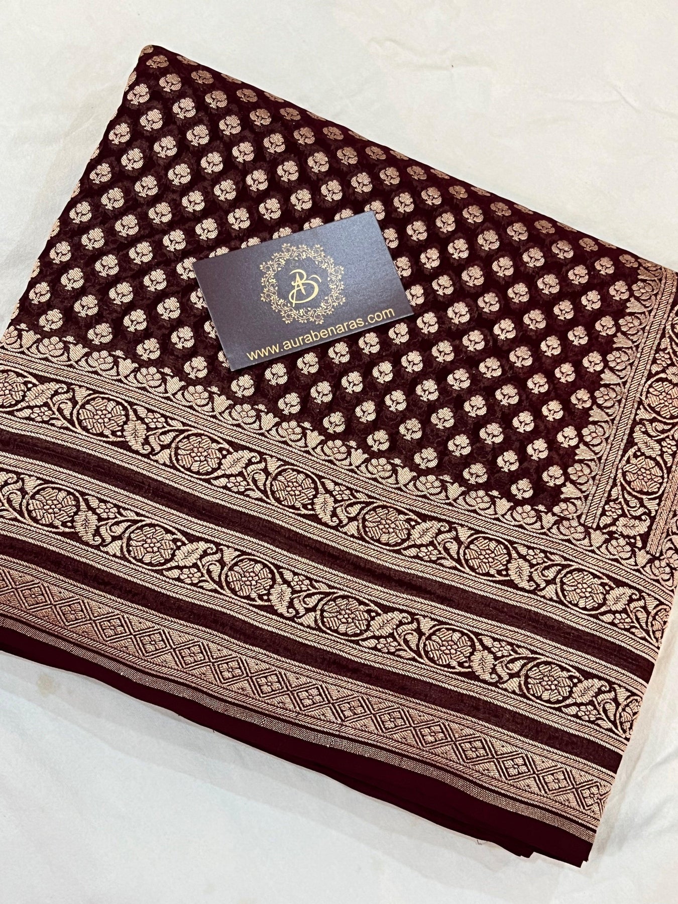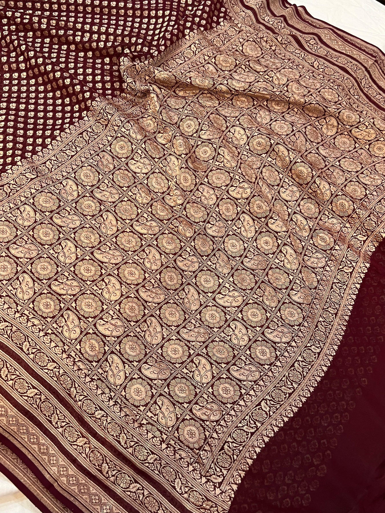 Deep Maroon Pure Banarasi Khaddi Georgette Saree