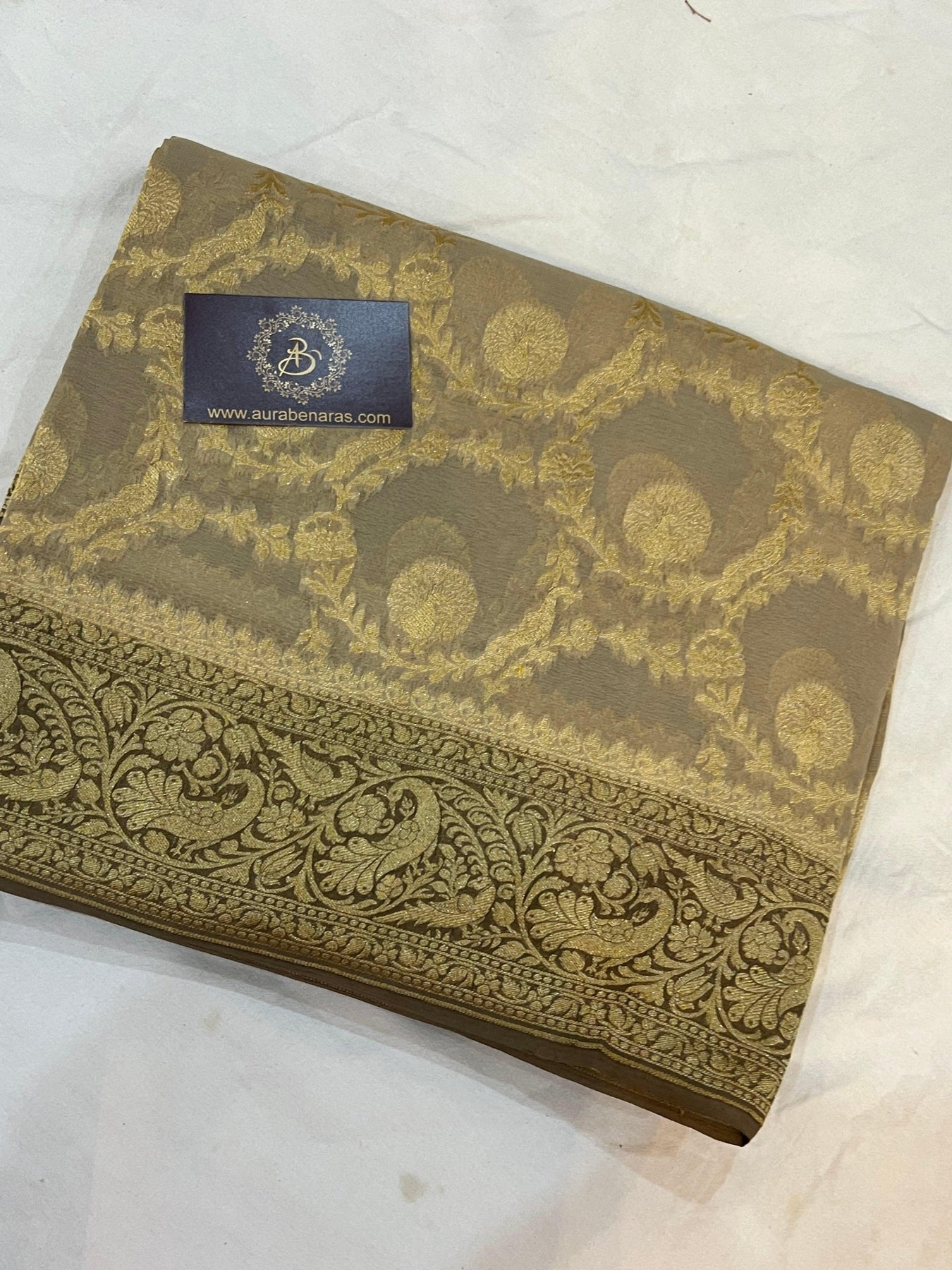 Light Grey Banarasi Khaddi Georgette Saree - Aura Benaras