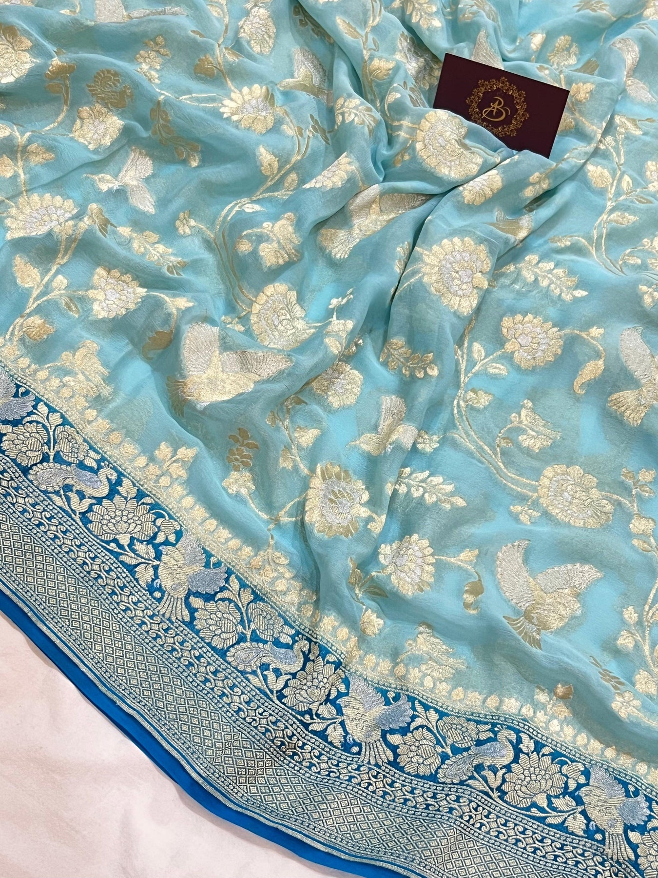 Pale Blue Pure Banarasi Khaddi Georgette Saree