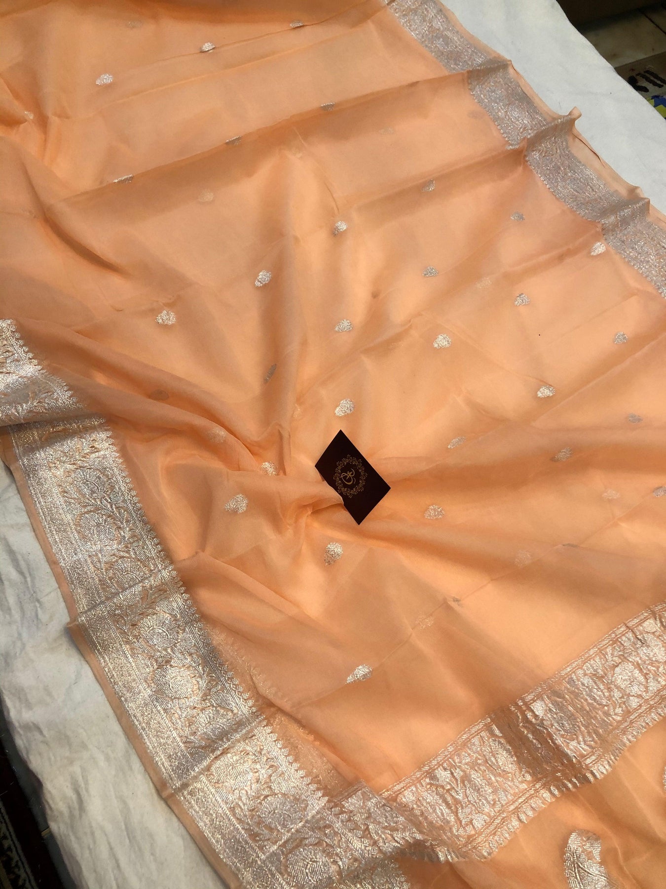Peach Khaddi Chiffon Banarasi Handloom Saree